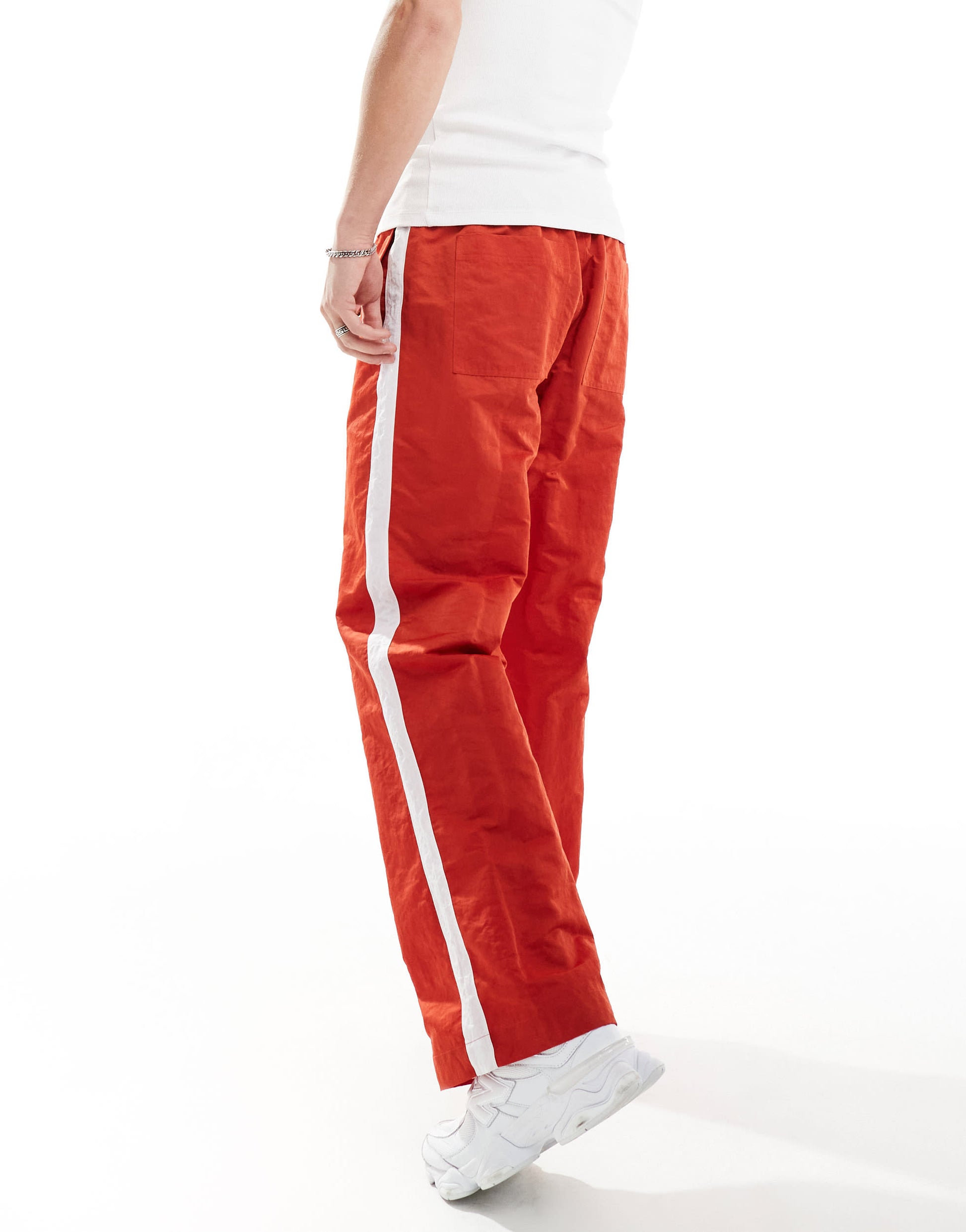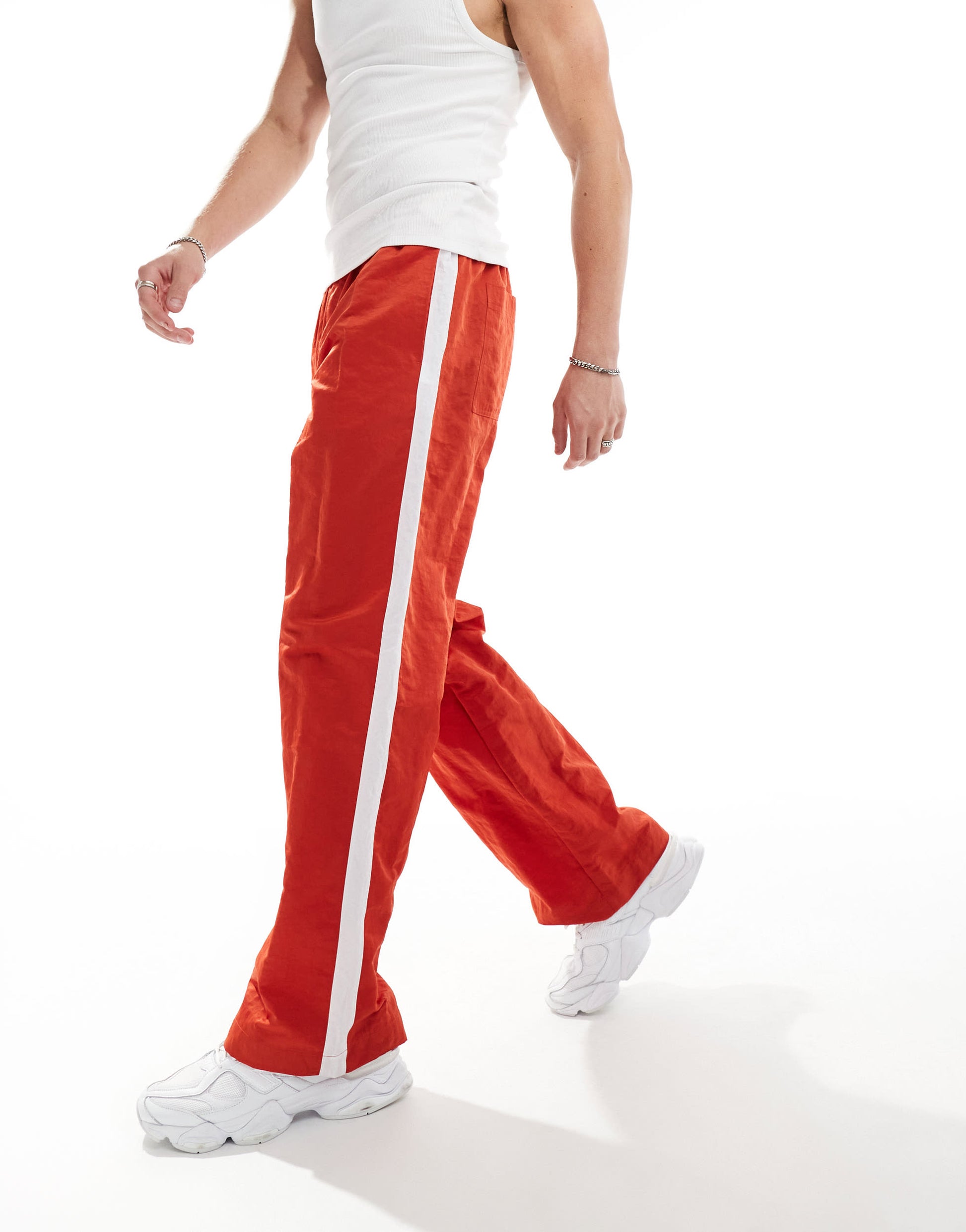 ASOS DESIGN wide nylon trousers in red with white side panel