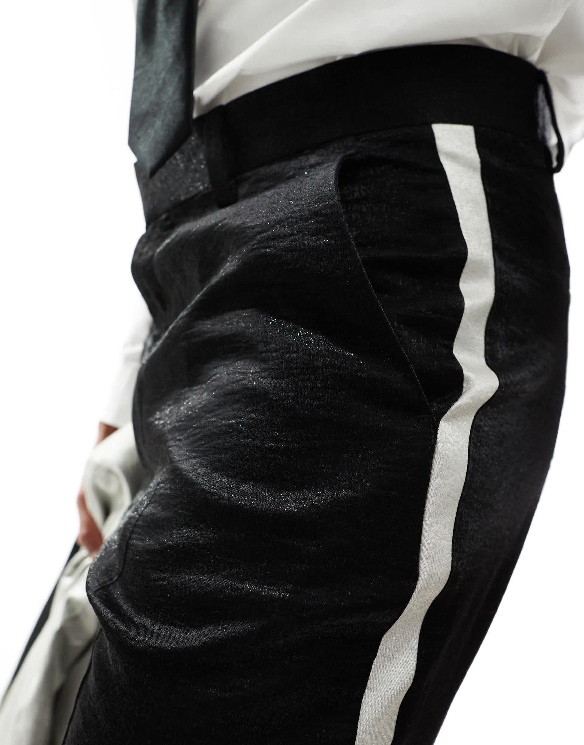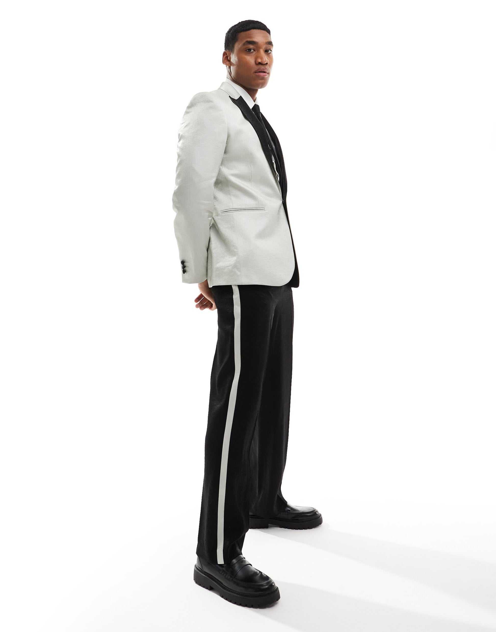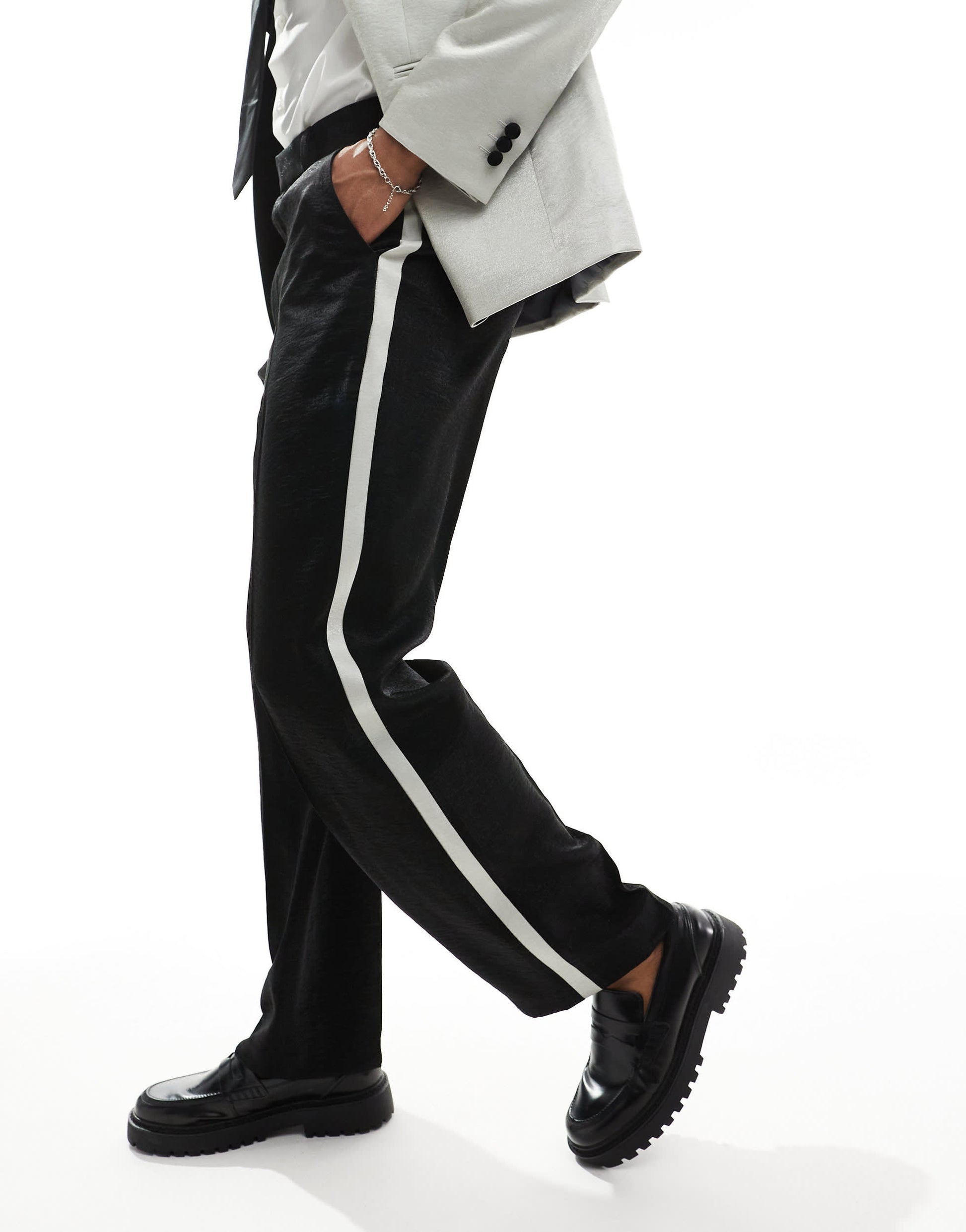 ASOS DESIGN wide tuxedo suit trouser in black and silver