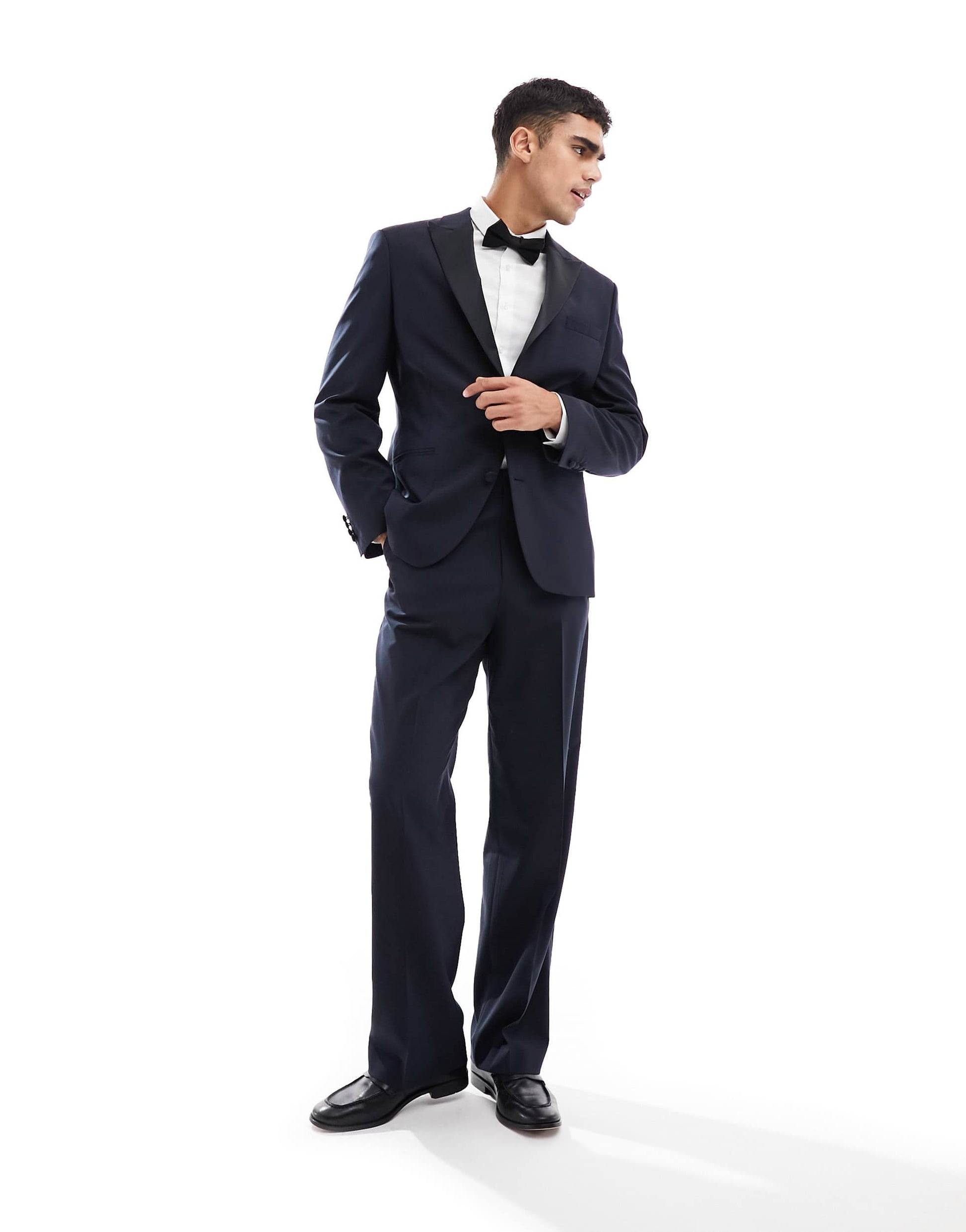 ASOS DESIGN wide tuxedo suit trouser in navy