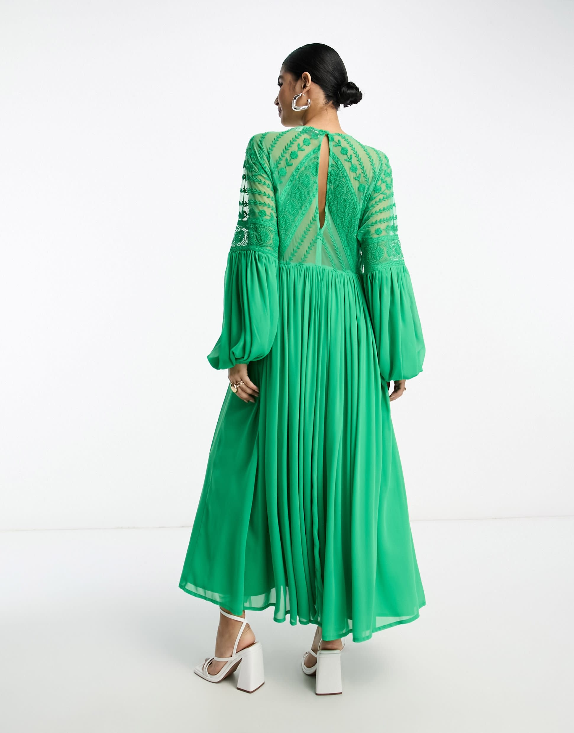 ASOS EDITION embroidered bodice oversized maxi dress in green