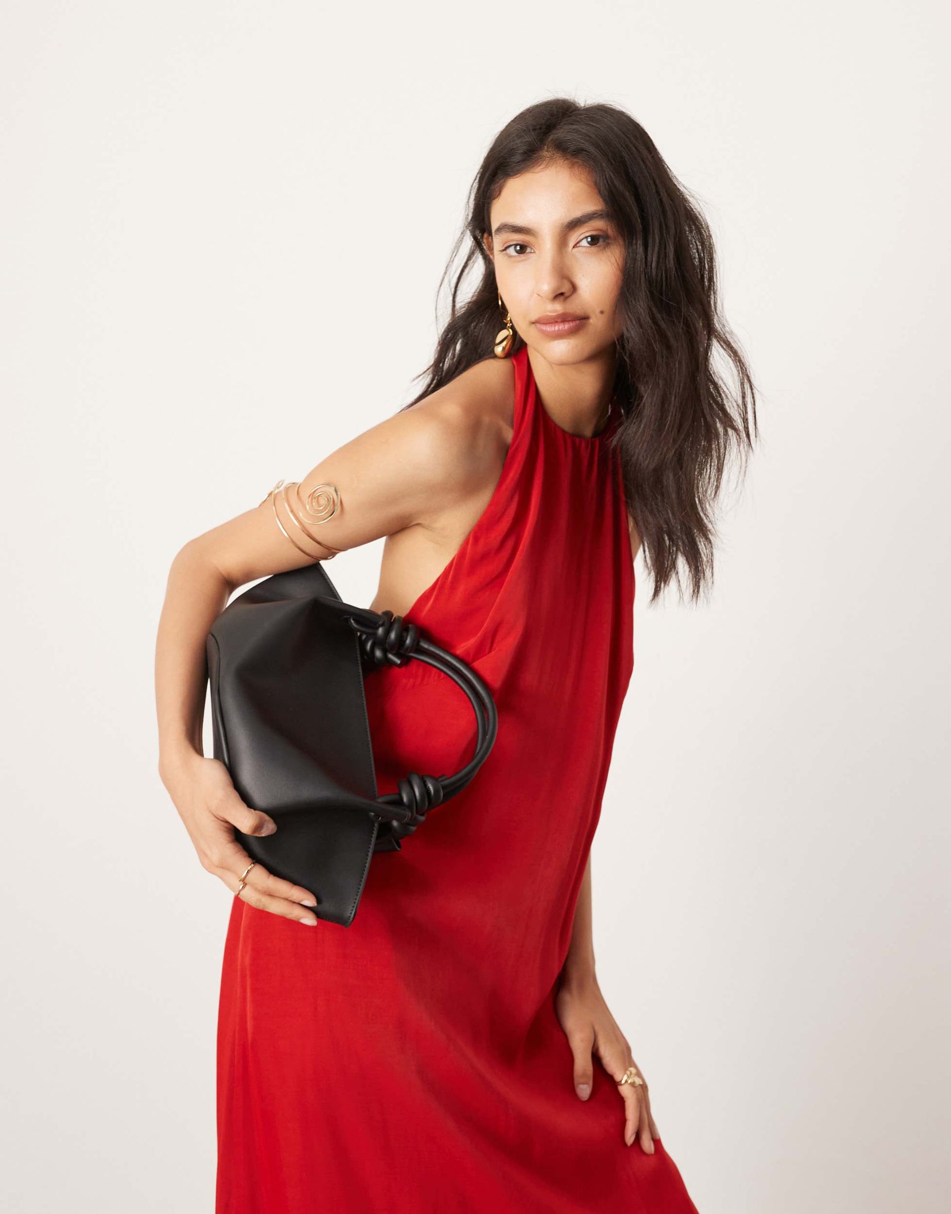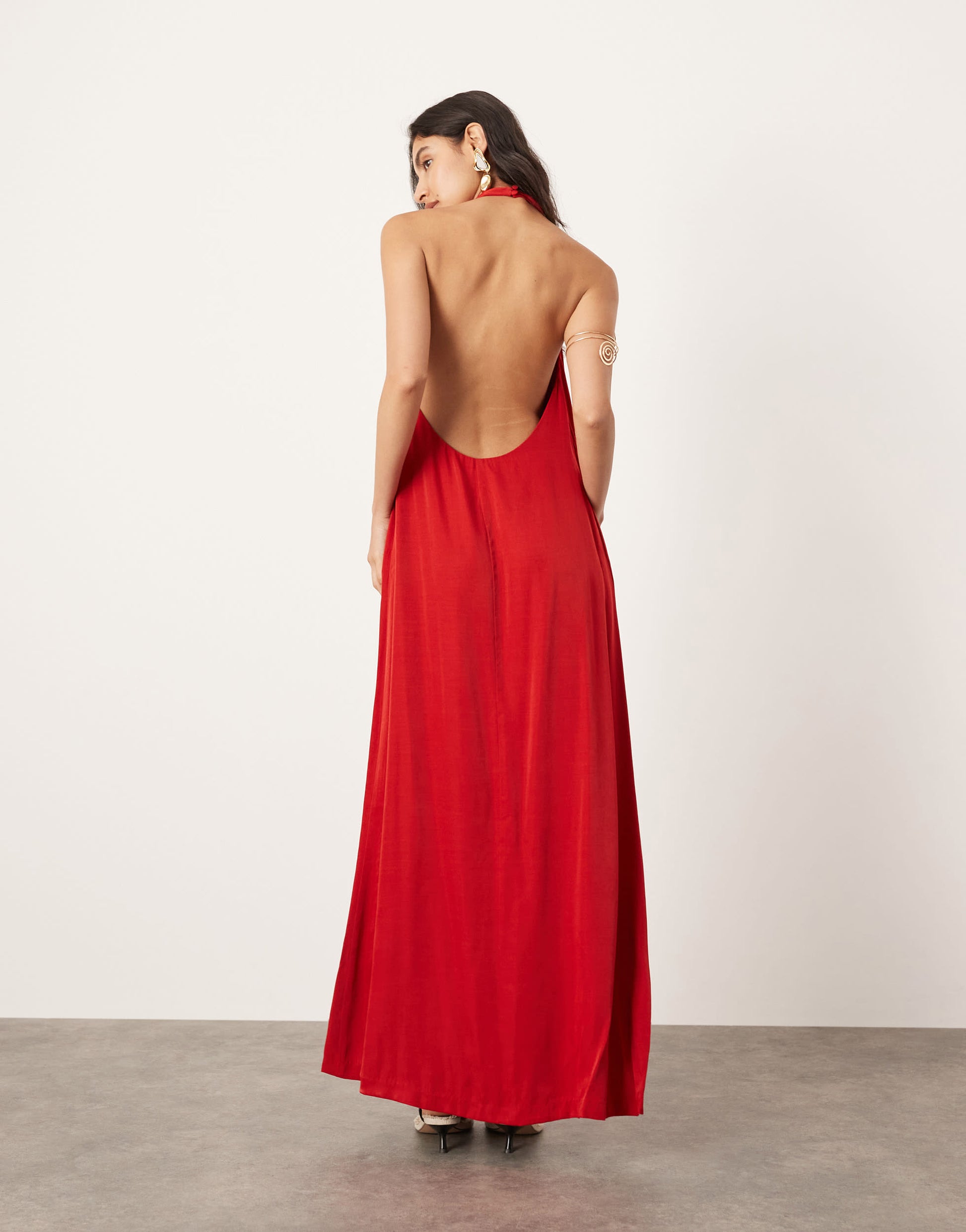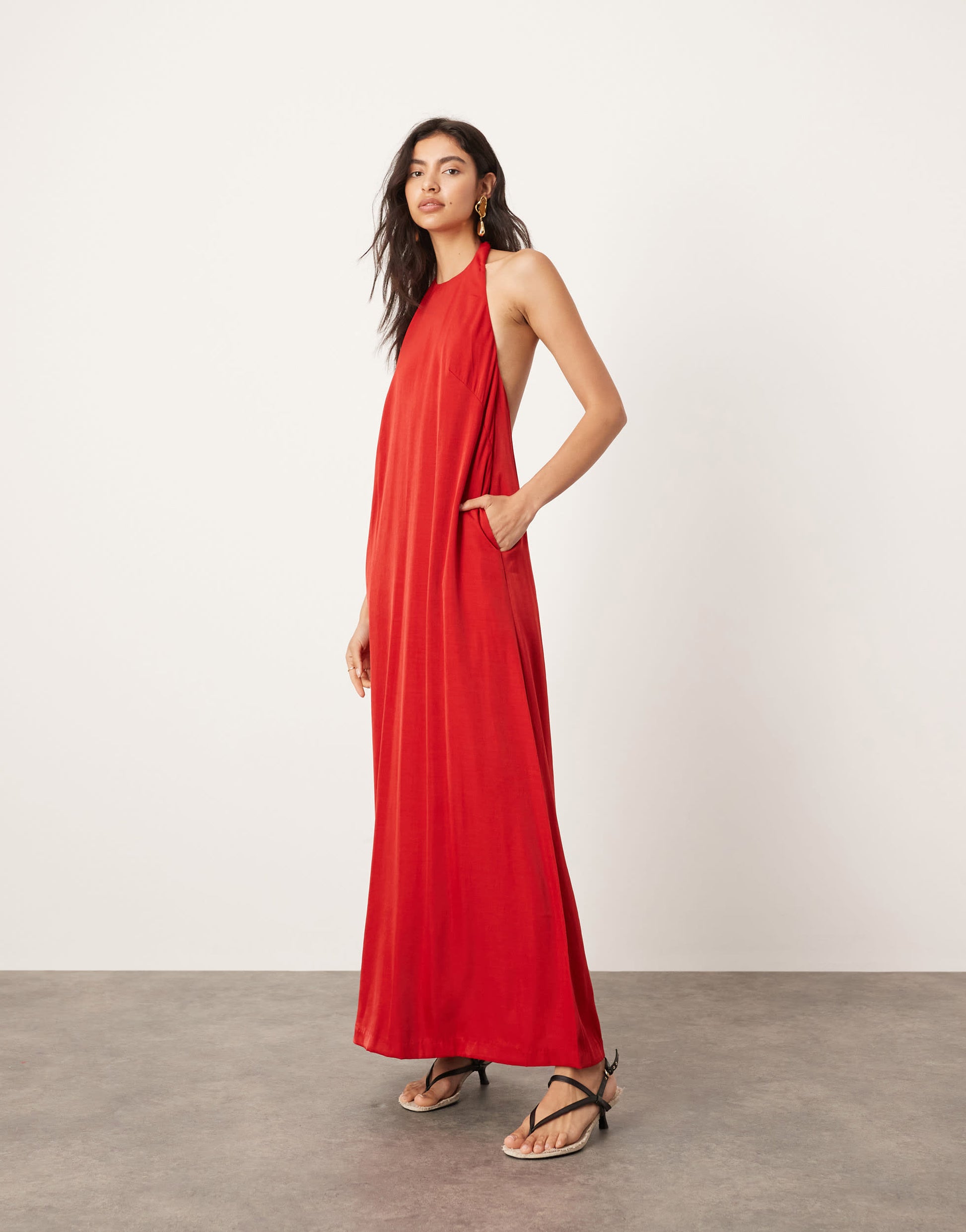 ASOS EDITION soft low back halterneck maxi dress with pockets in red