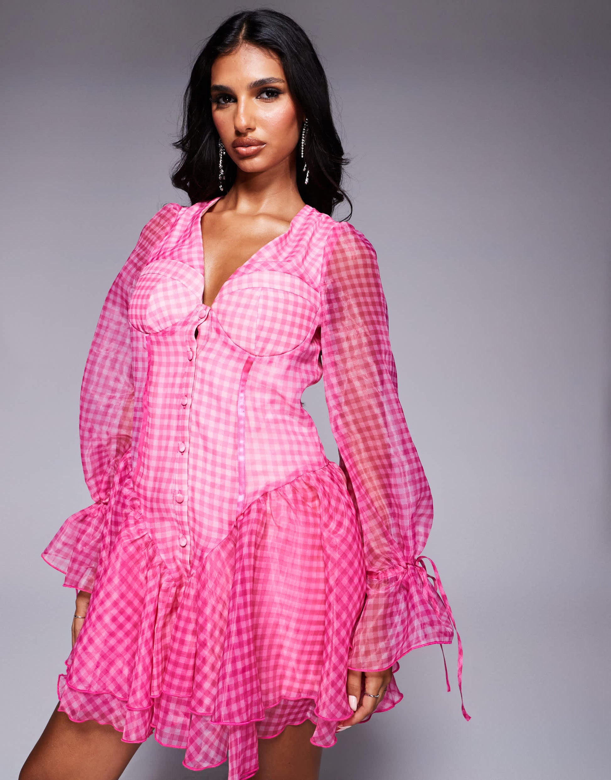 ASOS LUXE cupped organza mini dress in pink gingham print