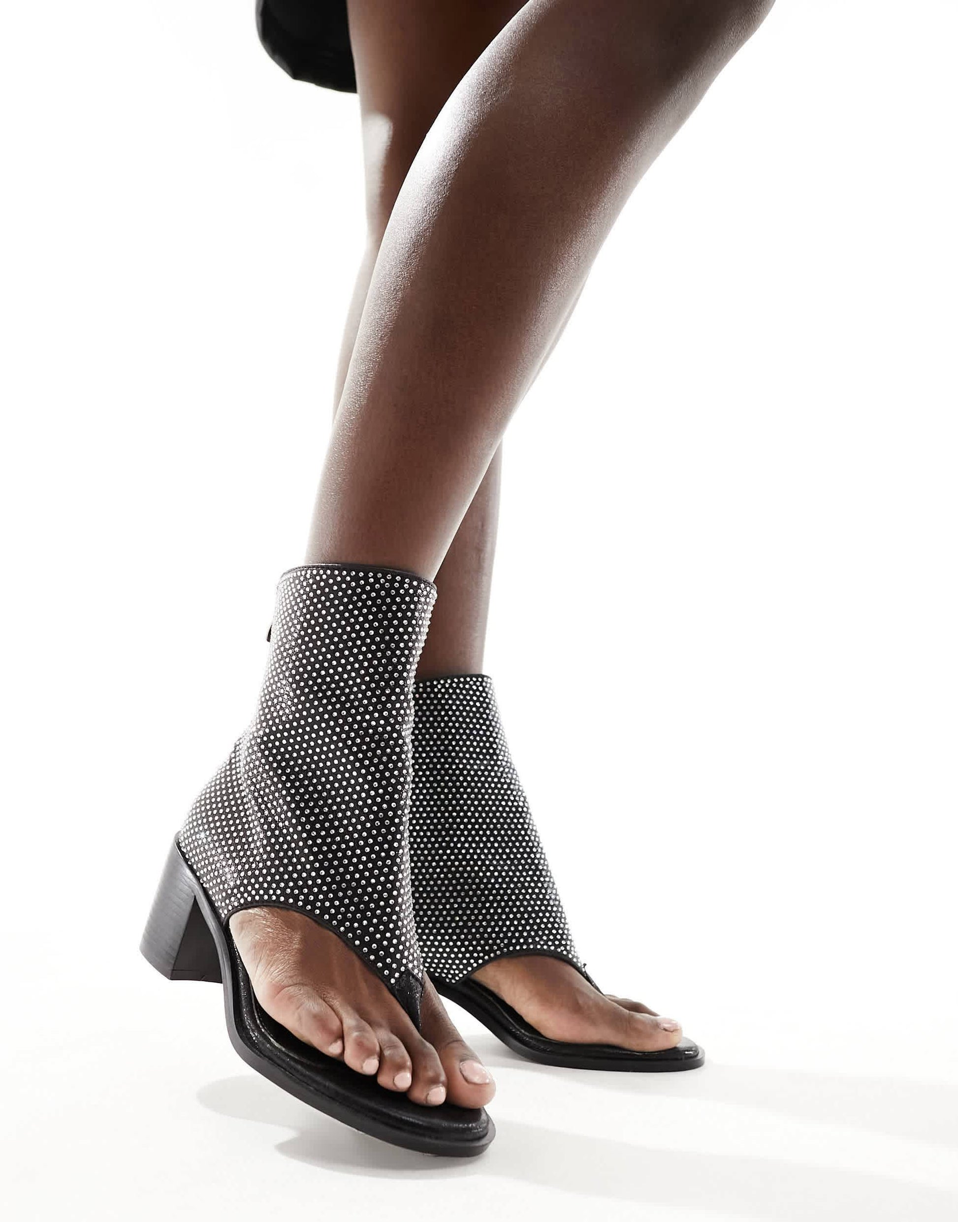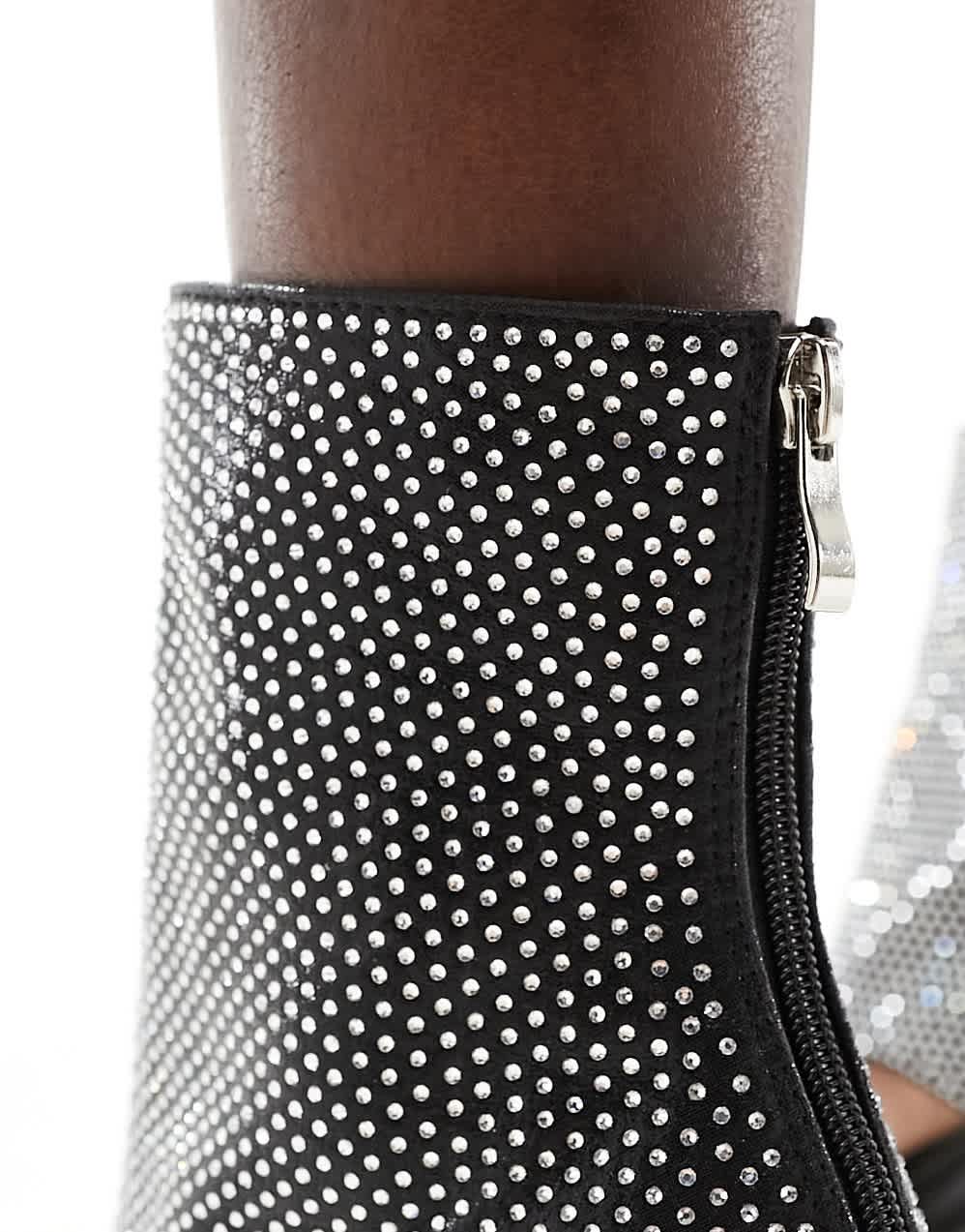Azalea Wang Grayson open toe mid ankle boot in silver rhinestone