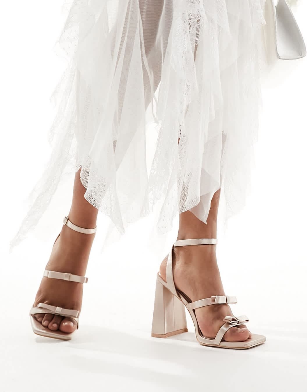 Be Mine Bridal Angelin bow block heel sandals in blush