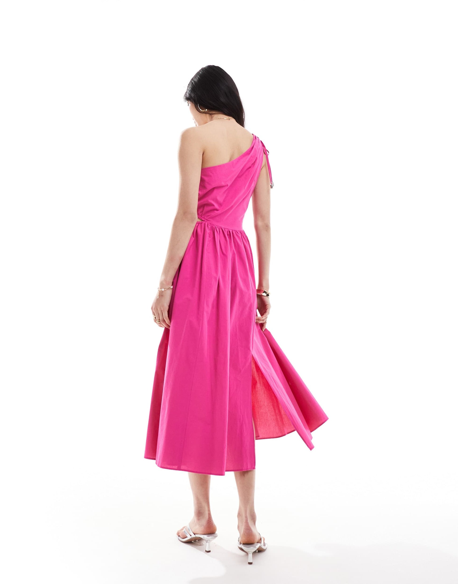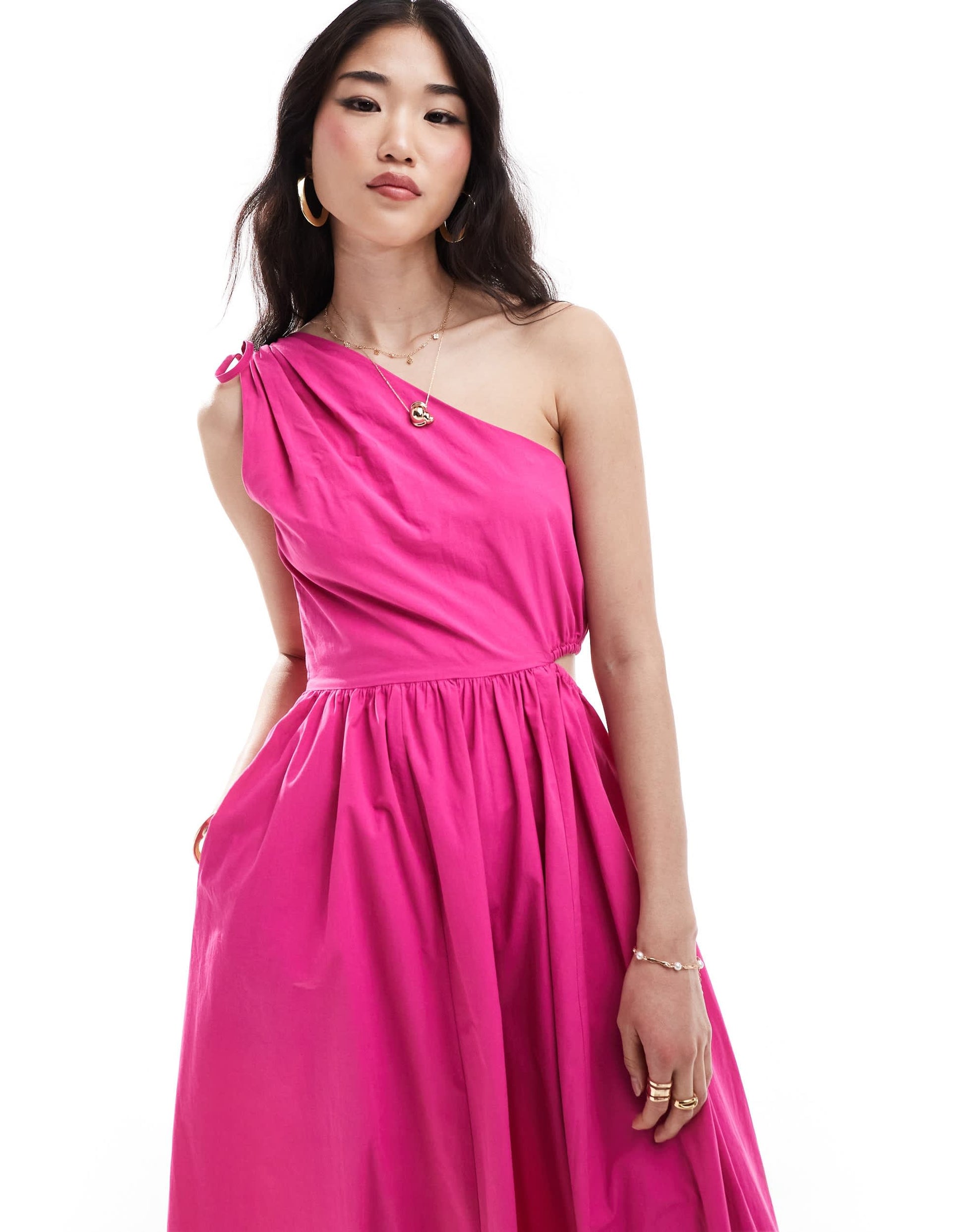 Closet London one shoulder cut out cotton midaxi dress in pink