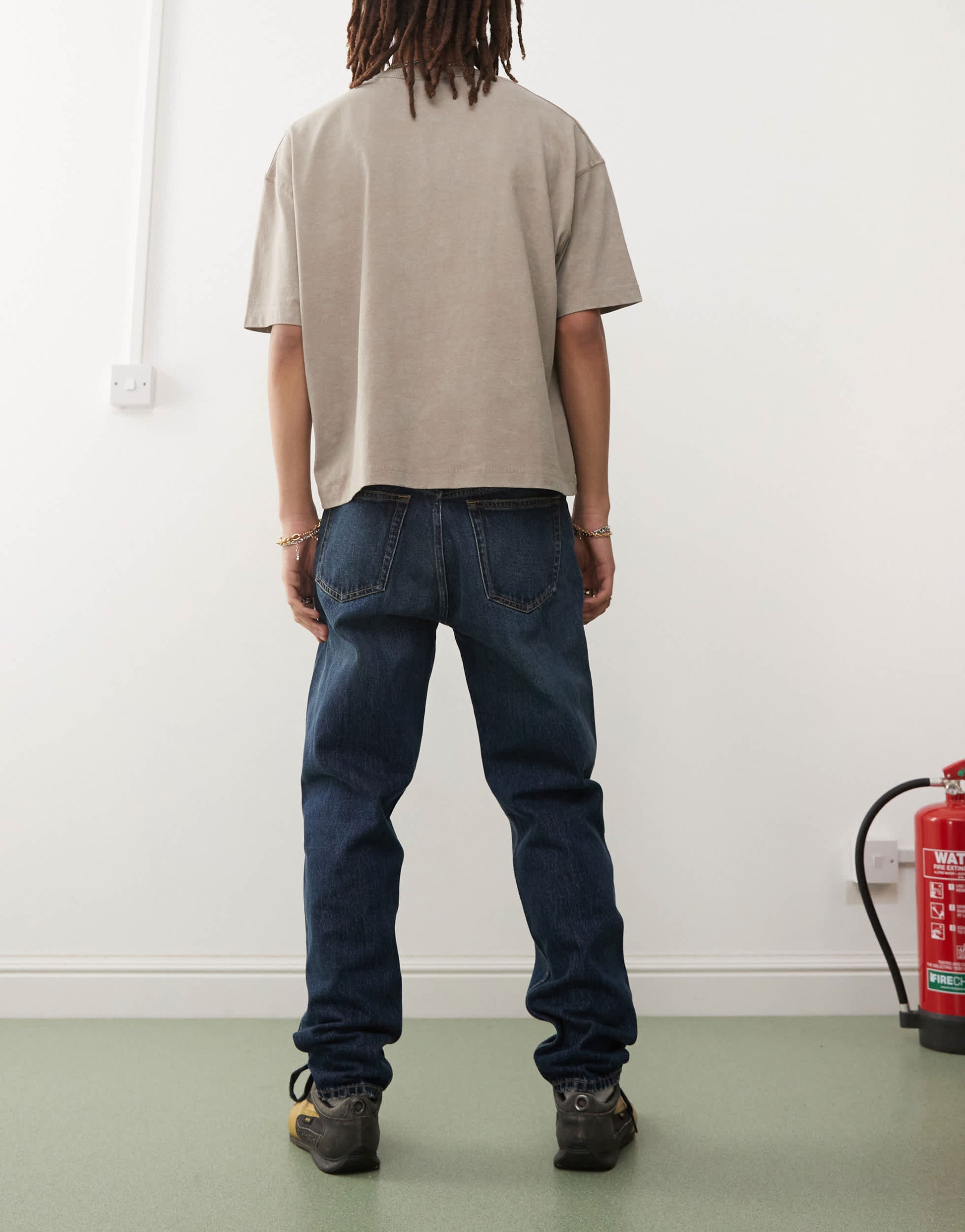Non-stretch denim: dark-blue wash Main: 100% Cotton.