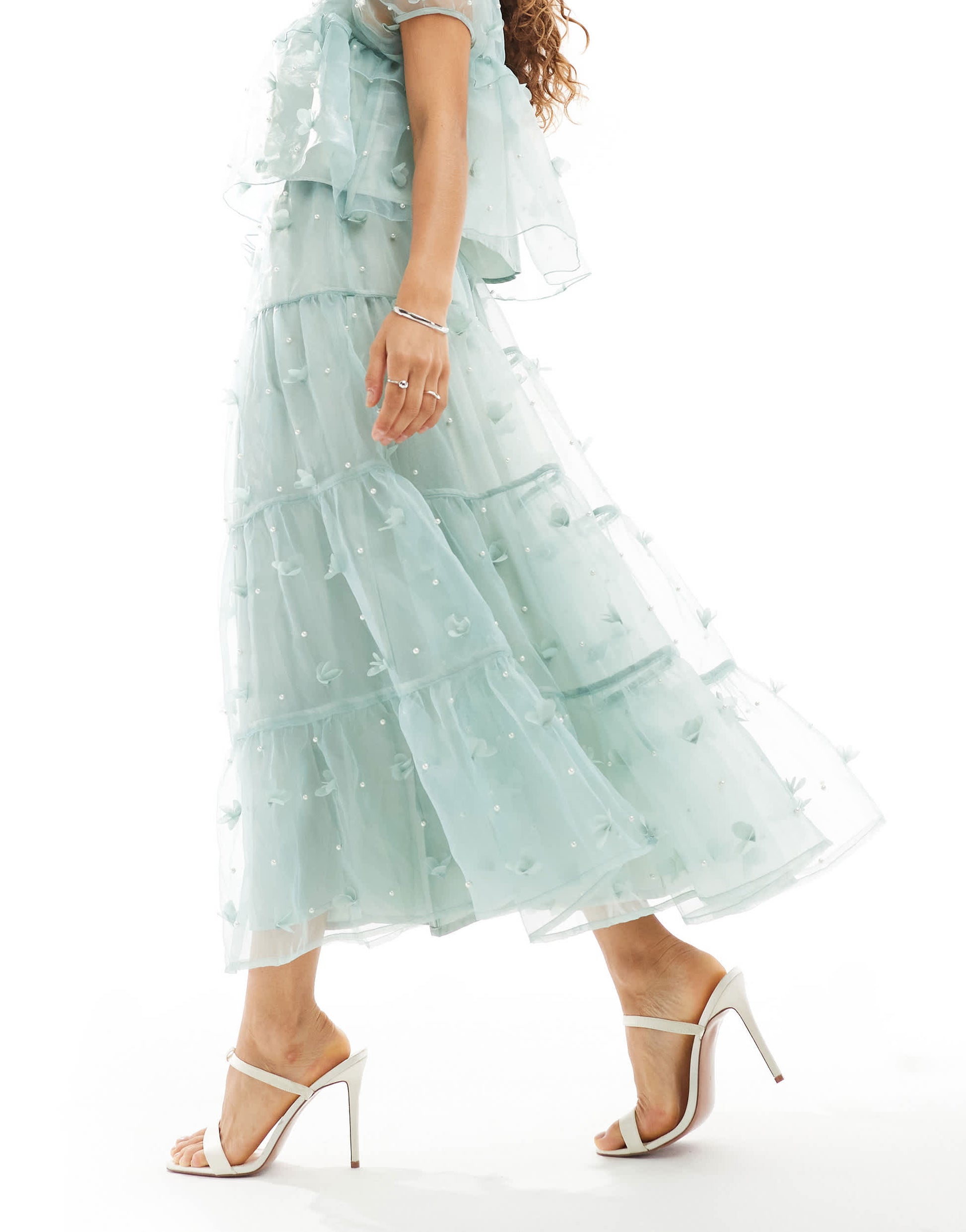 Dream Sister Jane floral organza midaxi skirt co-ord in sage