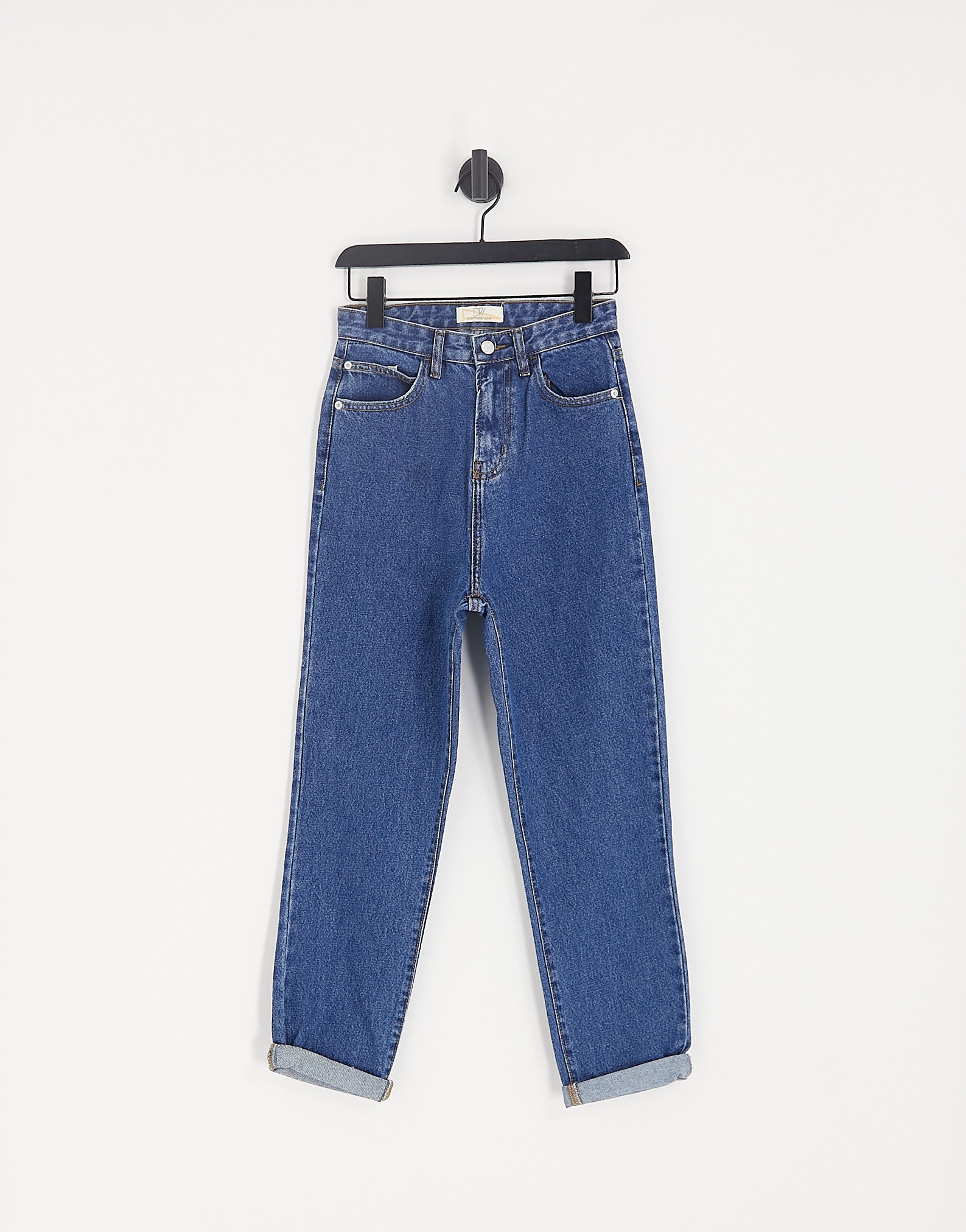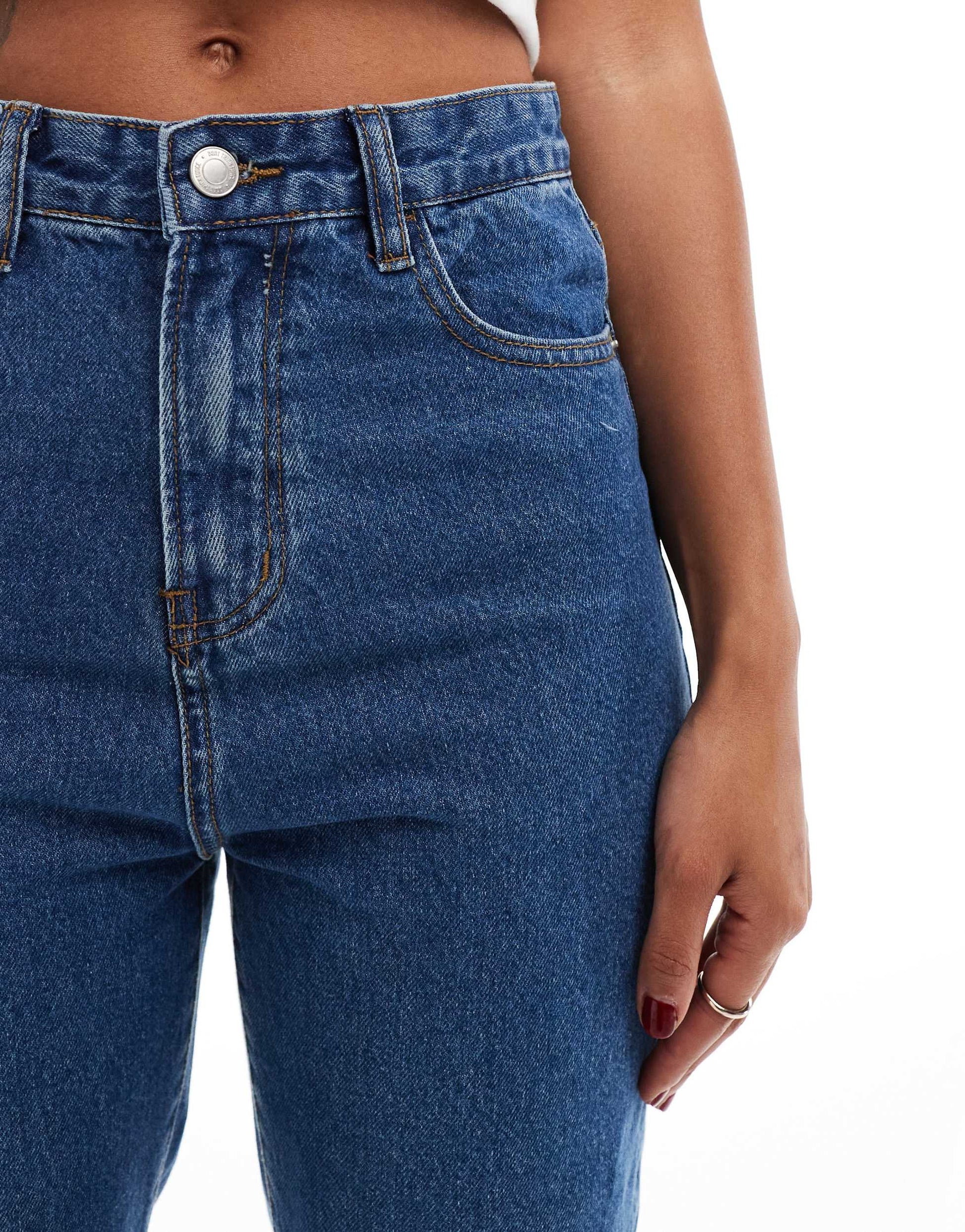 Non-stretch denim: mid-blue wash Main: 100% Cotton.