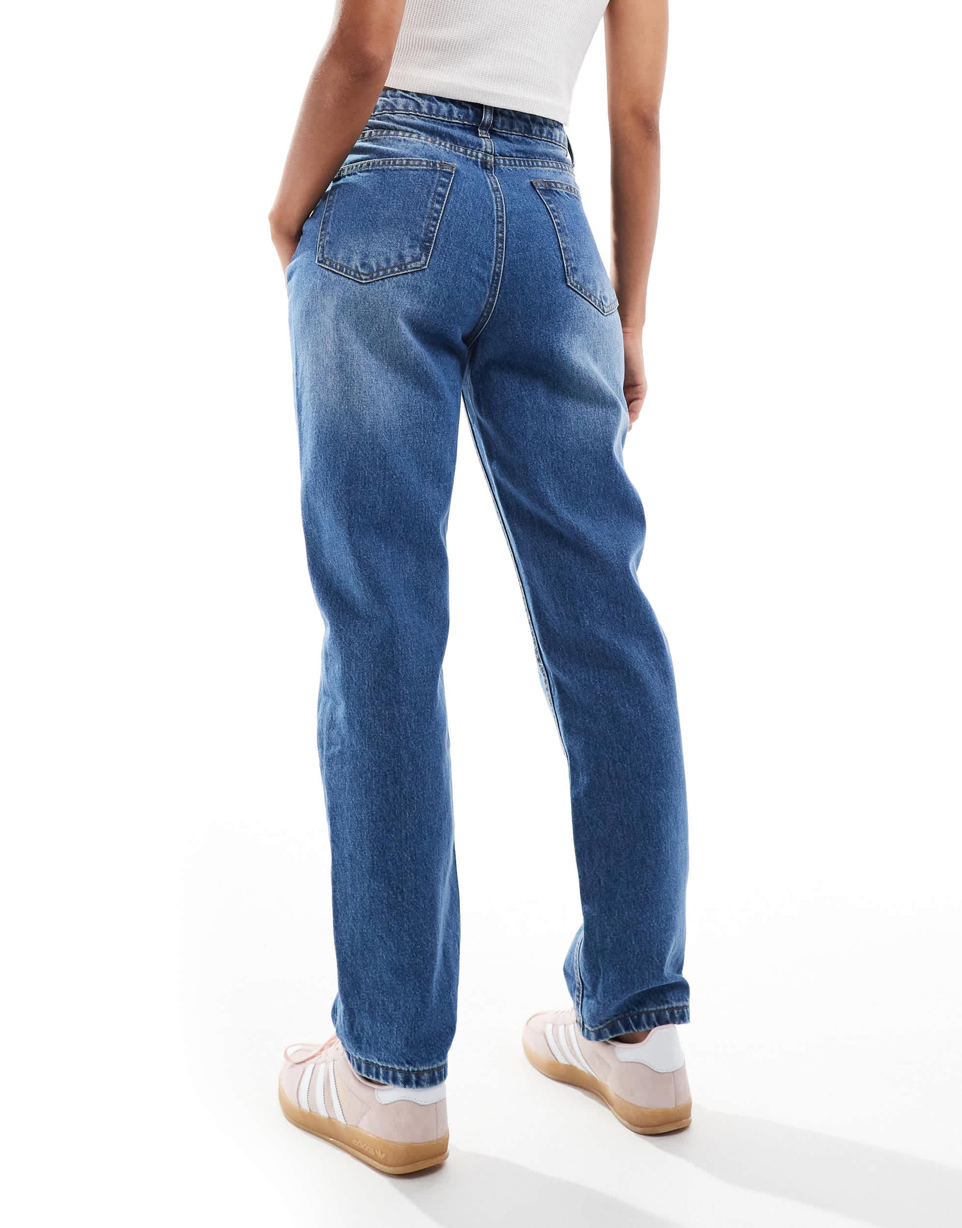 DTT Veron relaxed fit mom jeans in mid blue wash