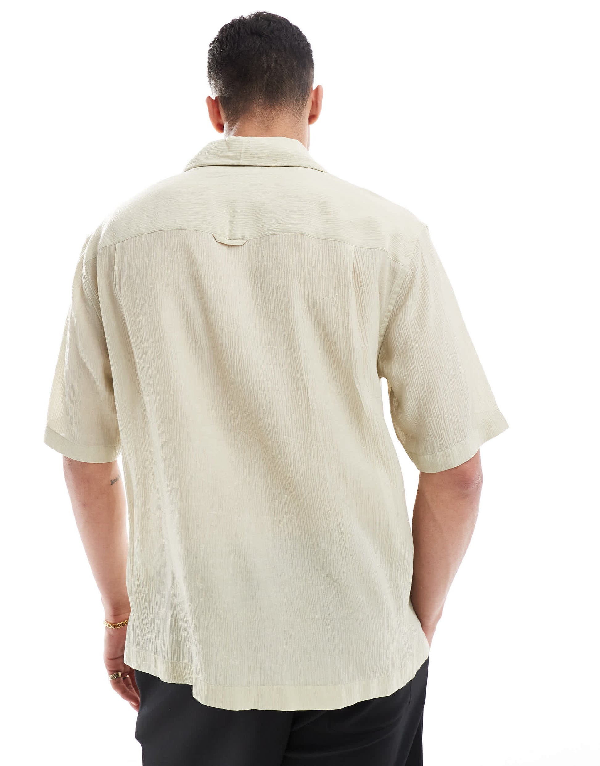 GANT short sleeve texture camp collar relaxed fit shirt in beige