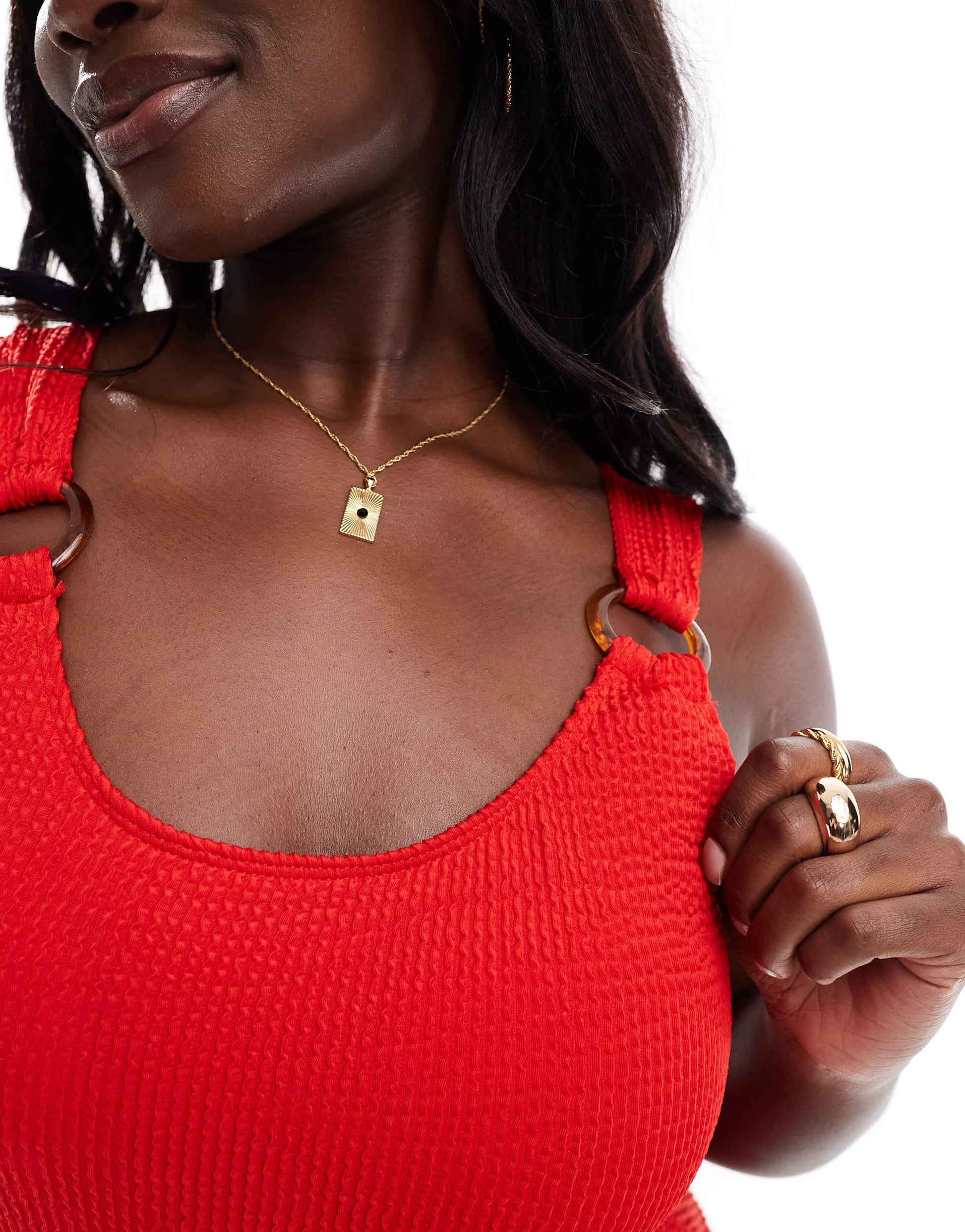 In The Style Plus crinkle square neck ring detail swimsuit in red