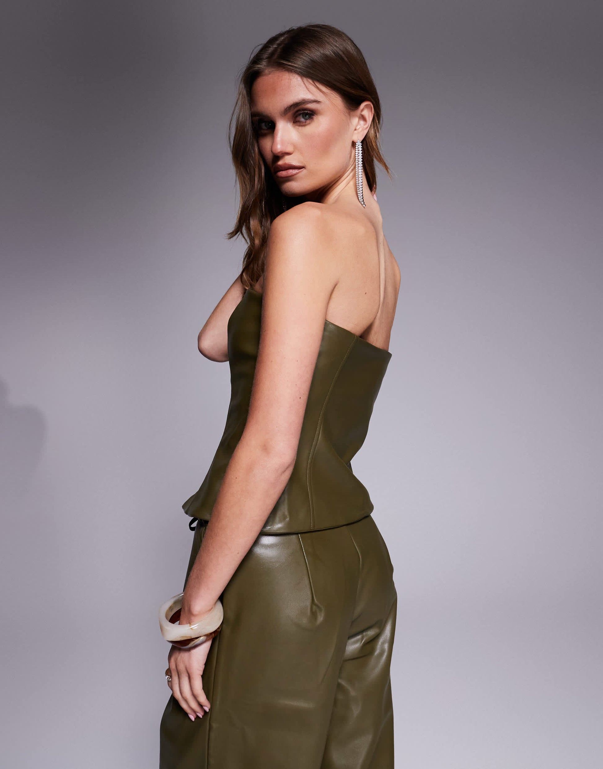 Kaiia exclusive leather look button through bandeau top co-ord in green
