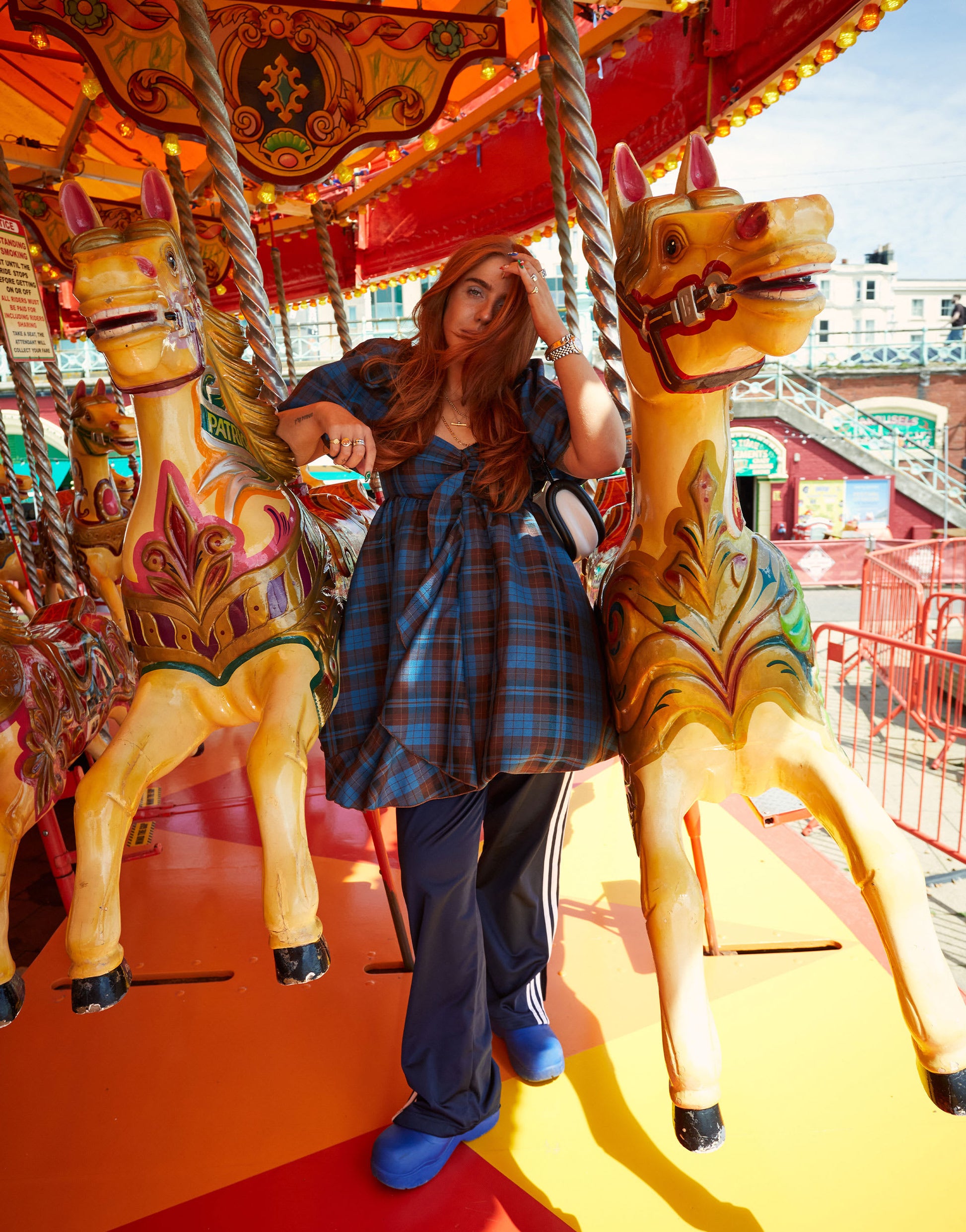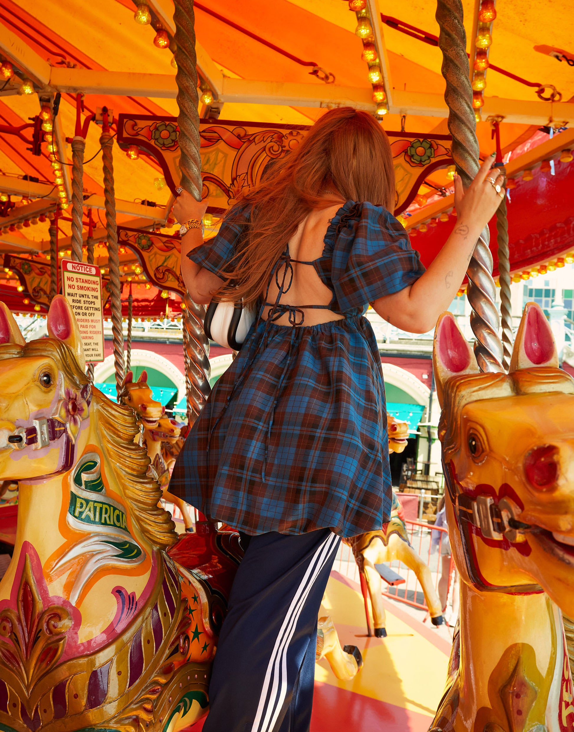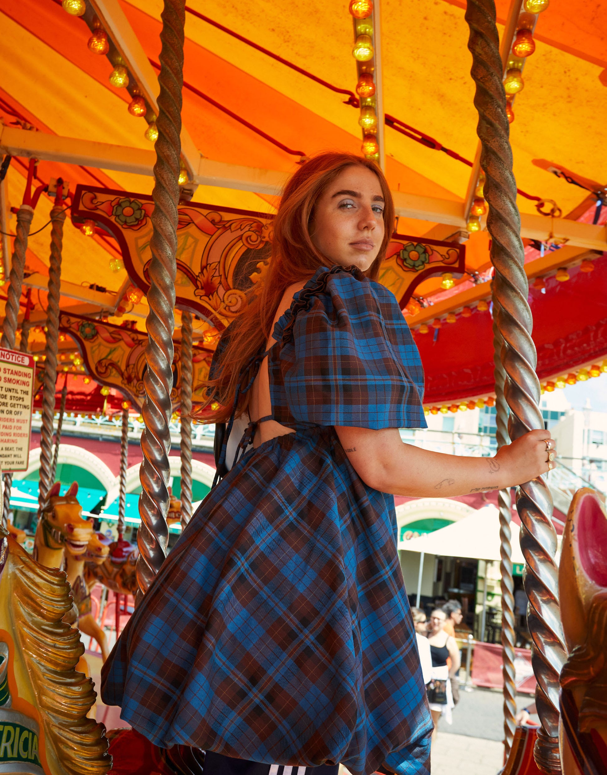 Labelrail x Laura Elizabeth Klein check ruffle smock mini dress in blue