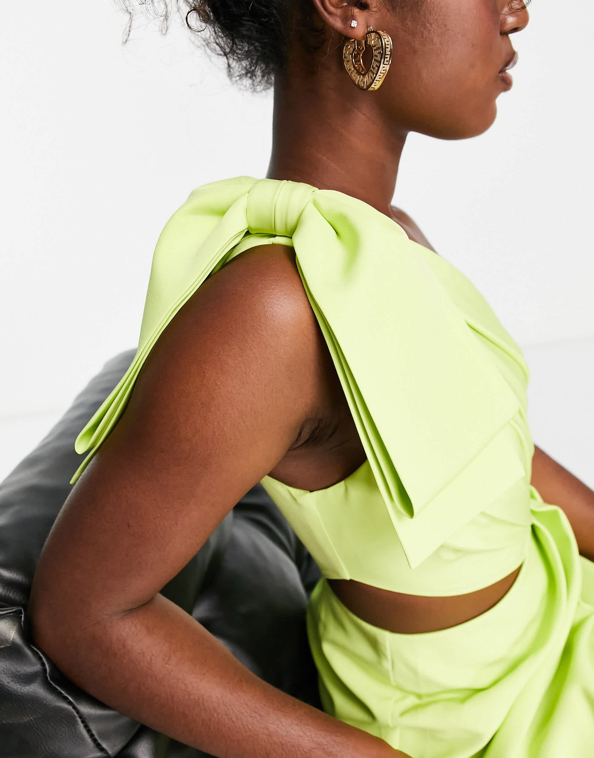 Lavish Alice one shoulder cut out detail wrap midi dress in lime green