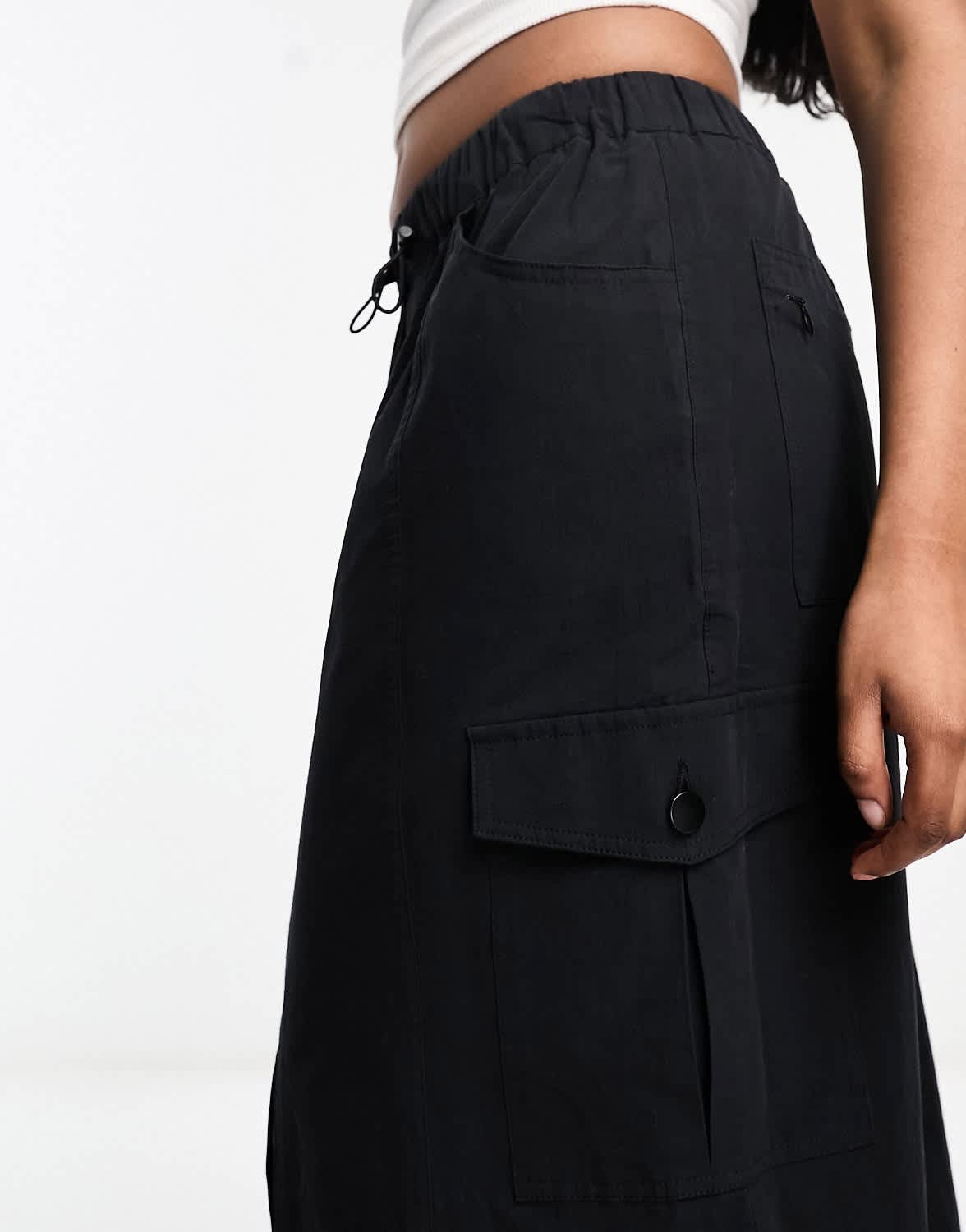 Miss Selfridge cargo pocket maxi skirt in black