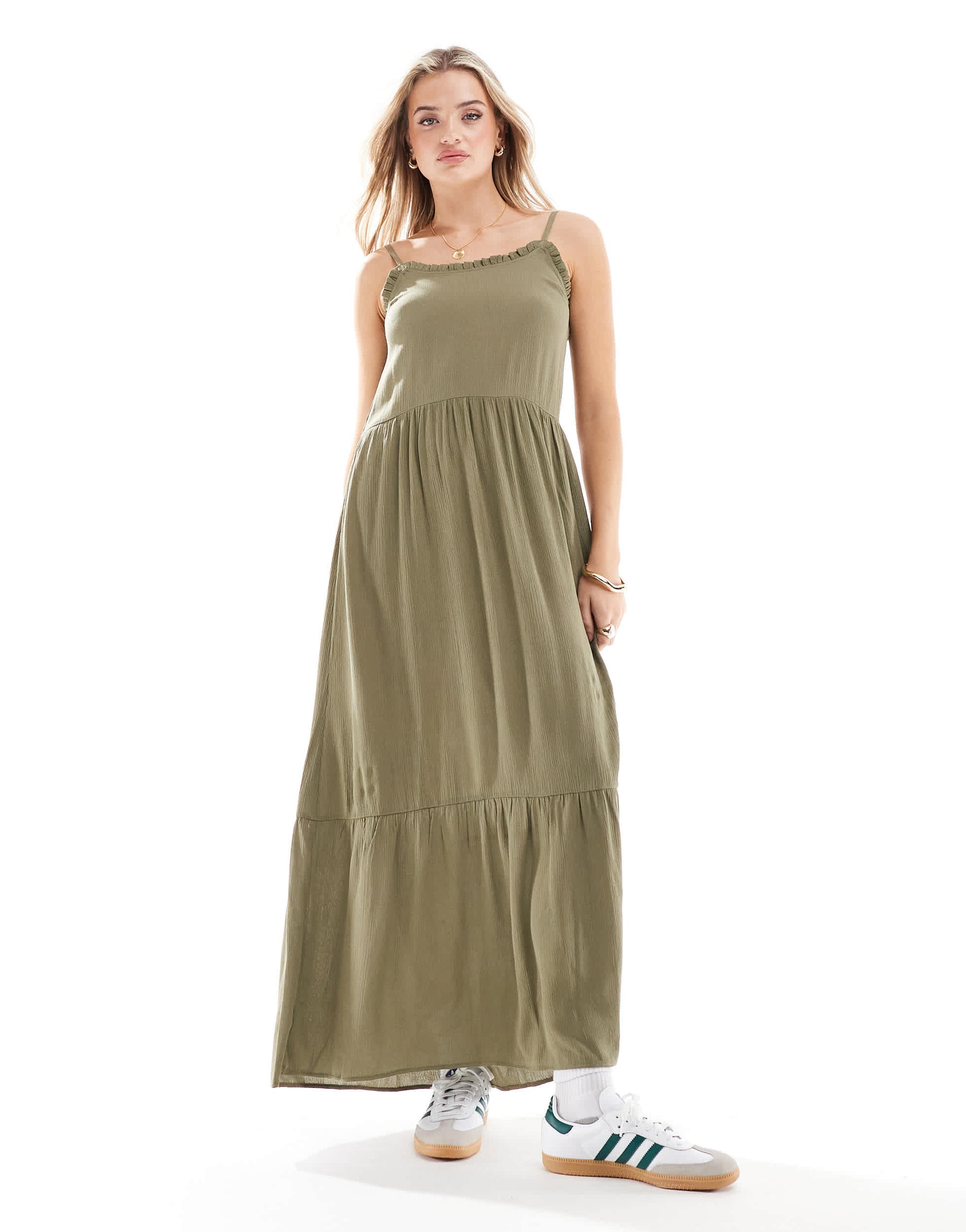 Miss Selfridge cheesecloth tiered maxi sundress in khaki