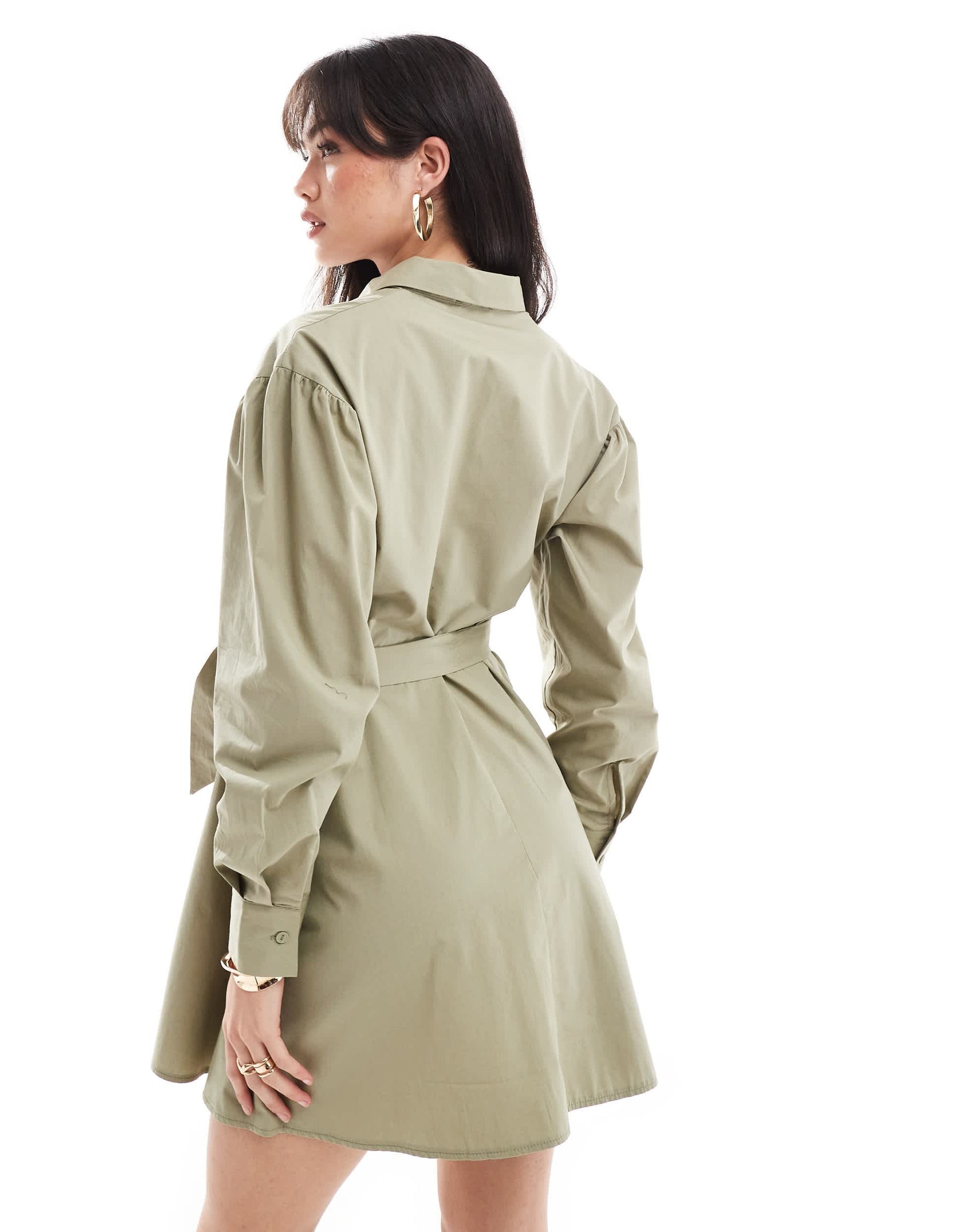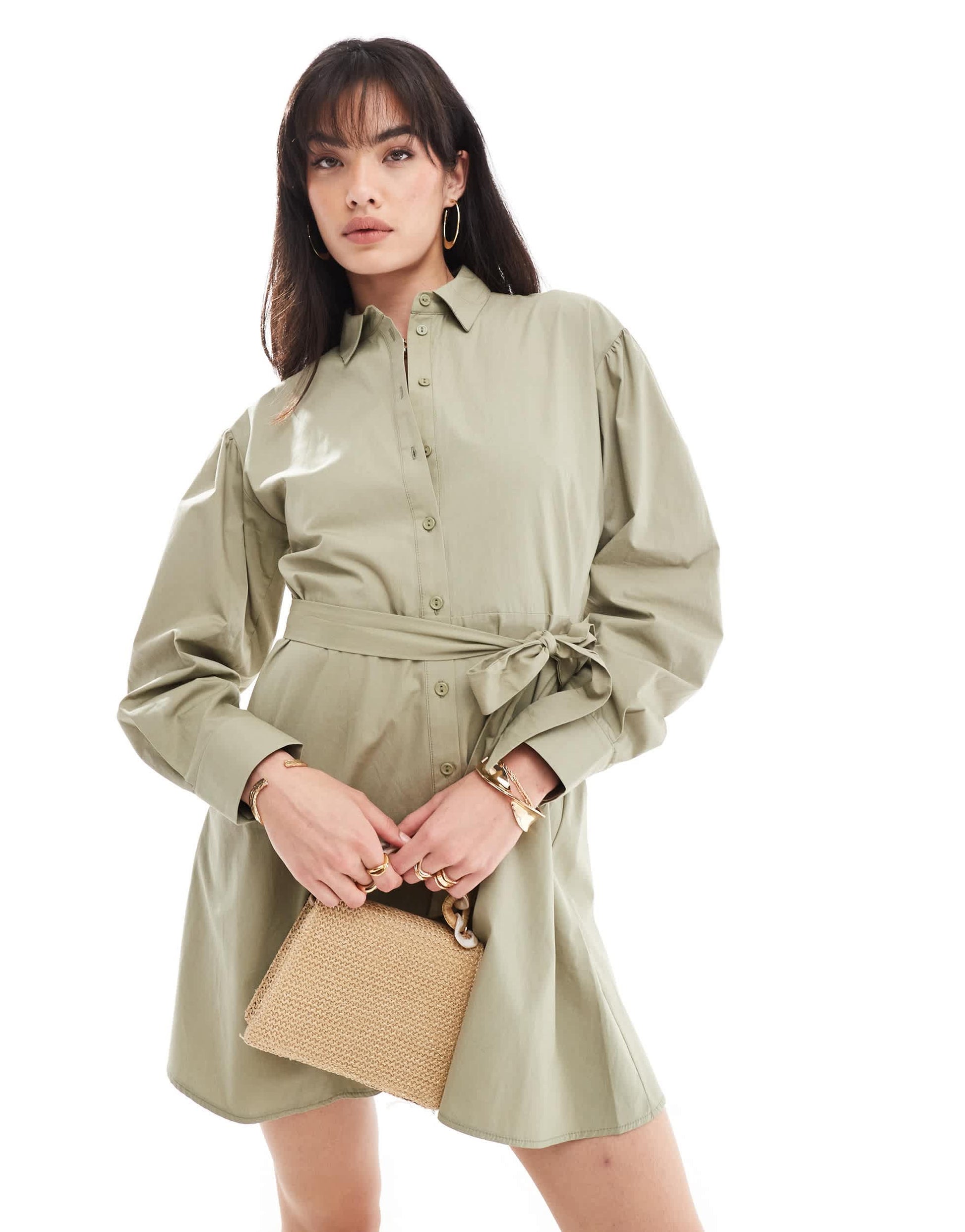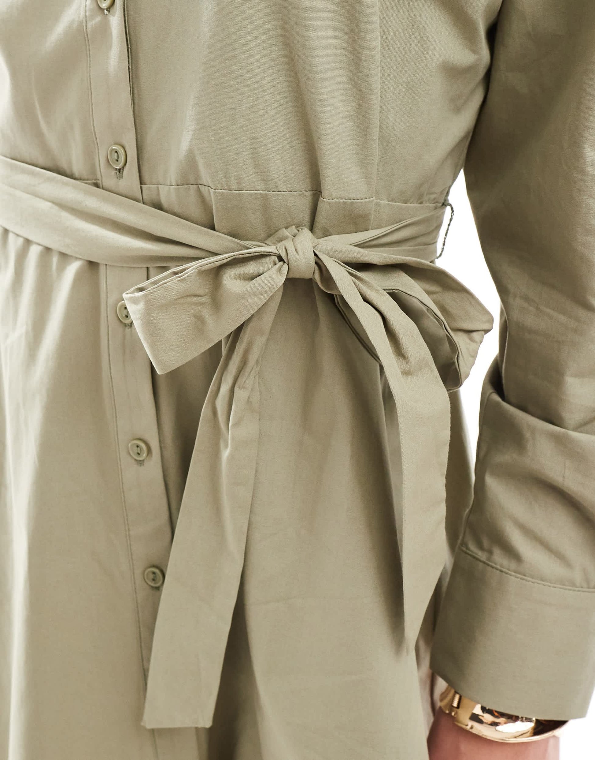 Miss Selfridge poplin belted mini shirt dress in khaki
