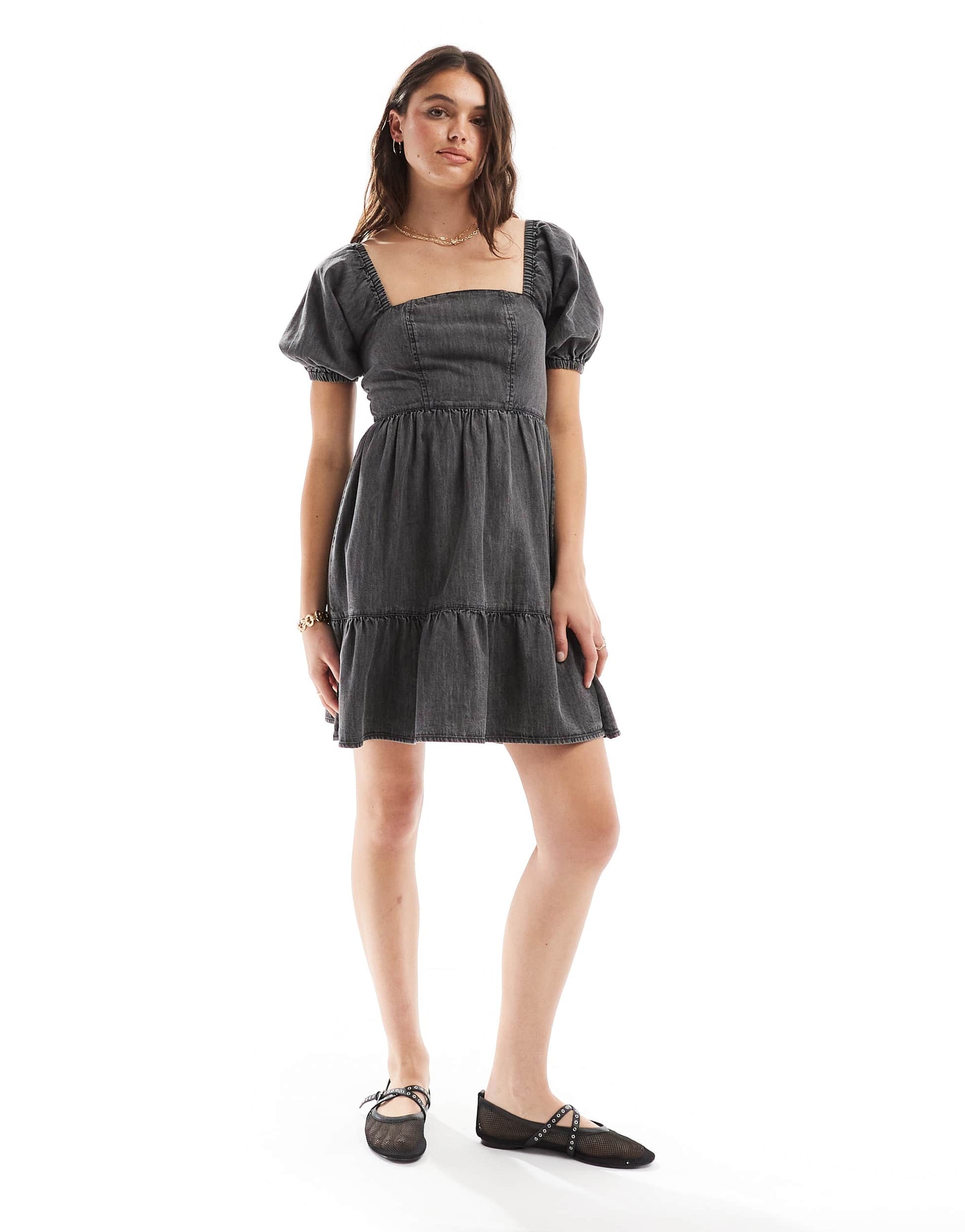 Miss Selfridge puff sleeve denim mini dress in black wash