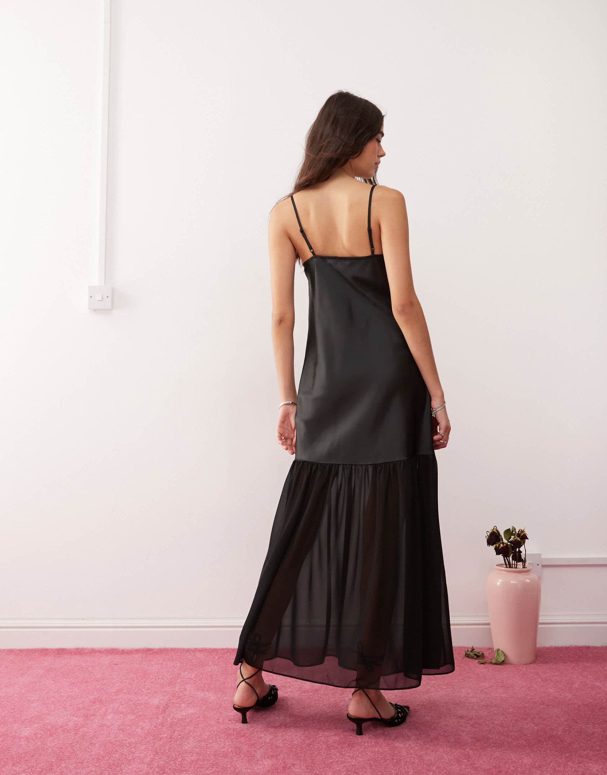 Satin-style fabric: glossy, drapey and silky-smooth Contrast: 100% Polyester, Main: 97% Polyester, 3% Elastane.