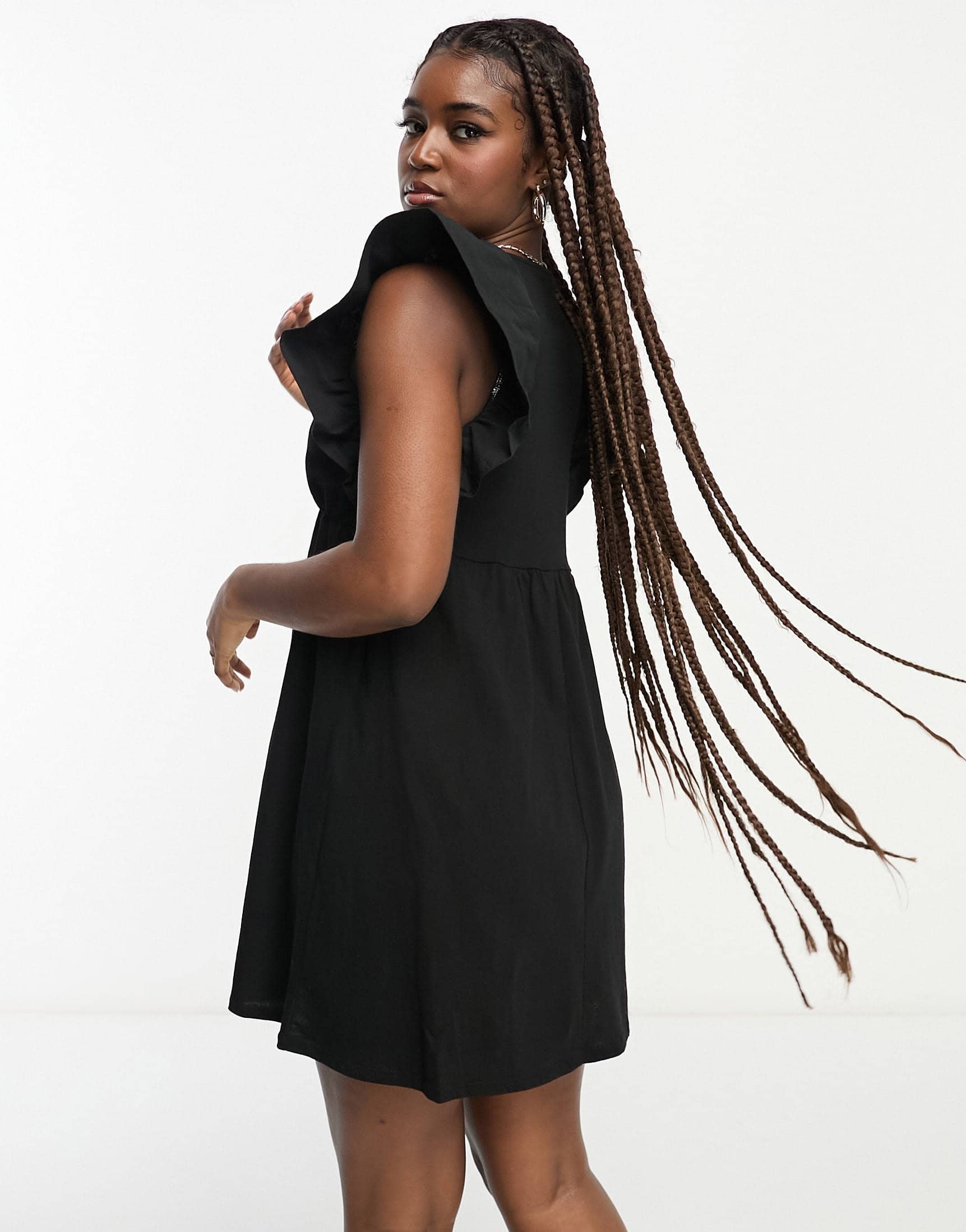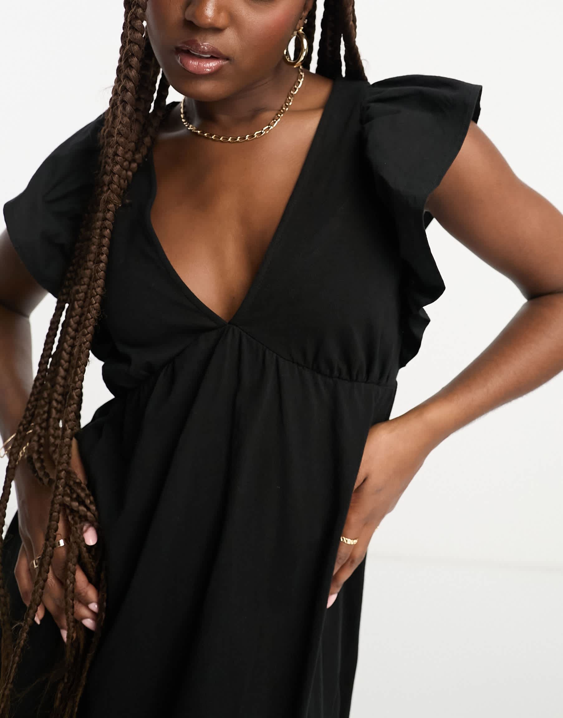Miss Selfridge smock mini dress with frill sleeve in black