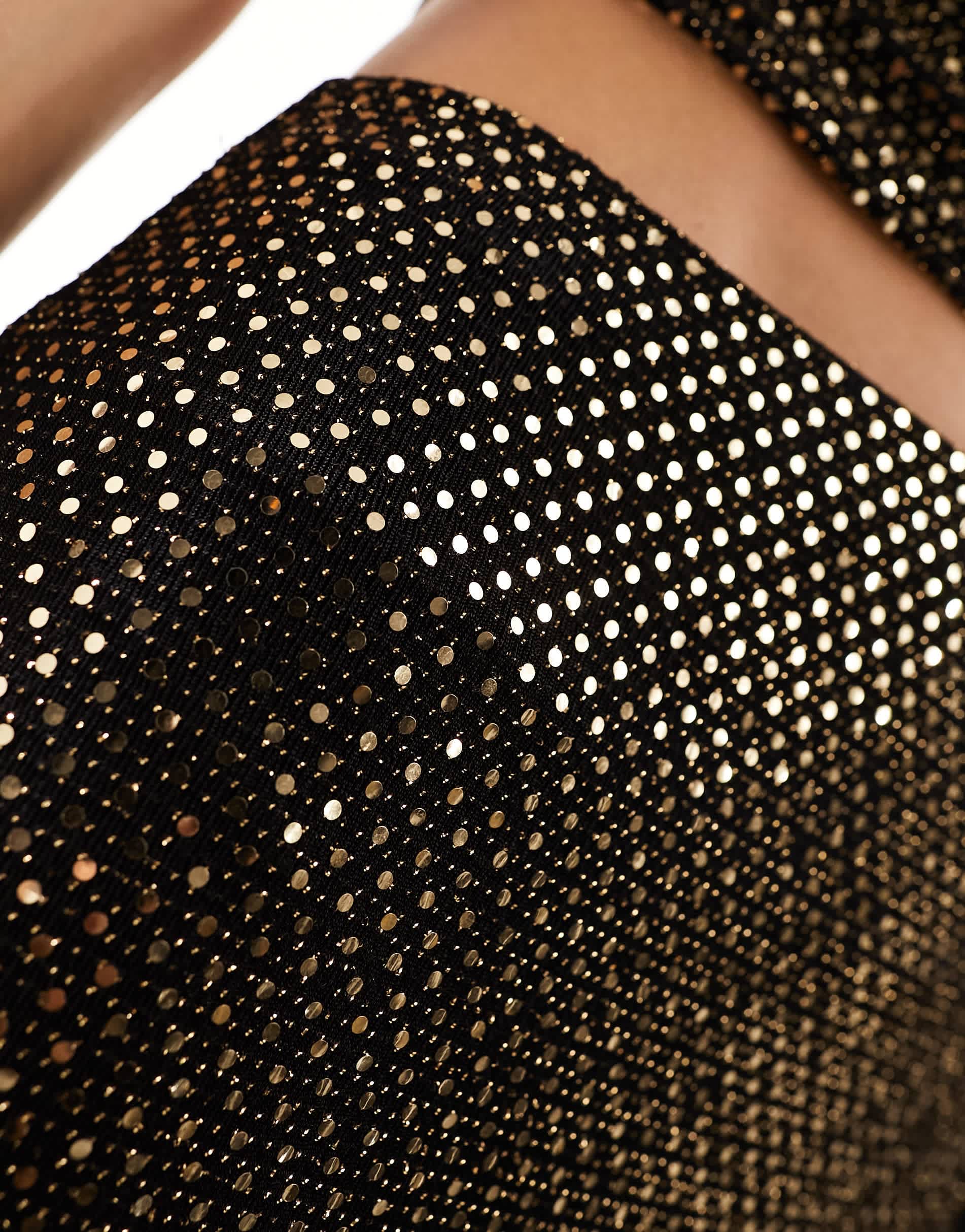 Woven fabric: sequin embellished Main: 95% Polyester, 5% Elastane.