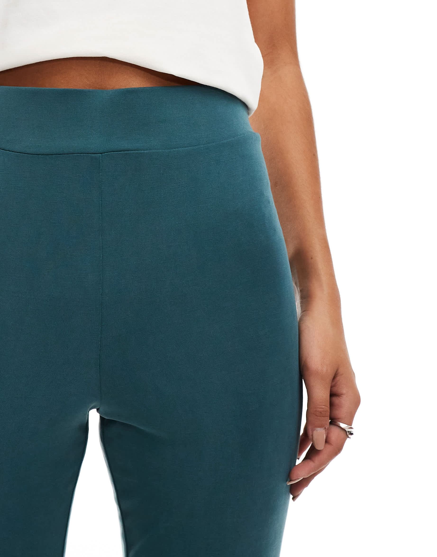 Monki super soft low waist flare jersey trousers in green