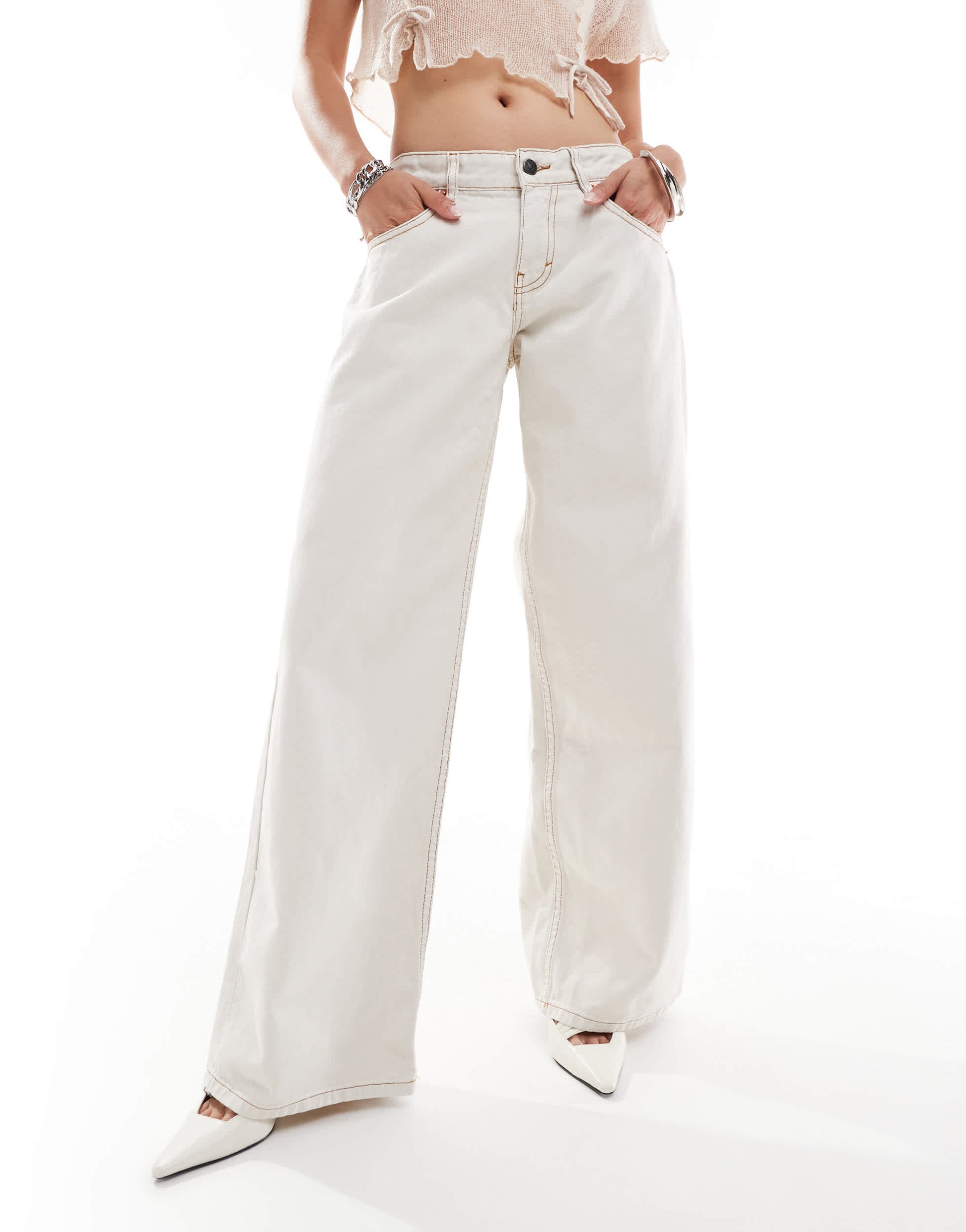 Non-stretch denim: off-white wash Main: 100% Cotton.