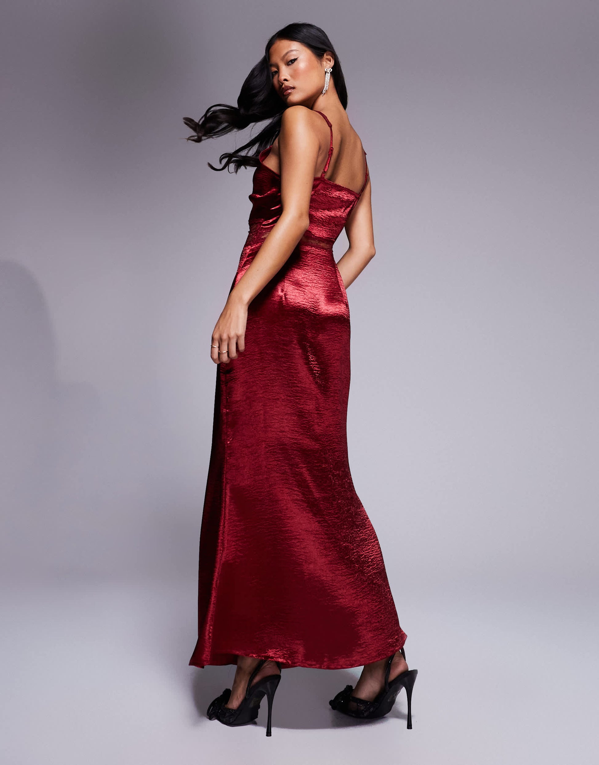 Never Fully Dressed Petite Mimi lace cut-out slip midaxi dress in oxblood
