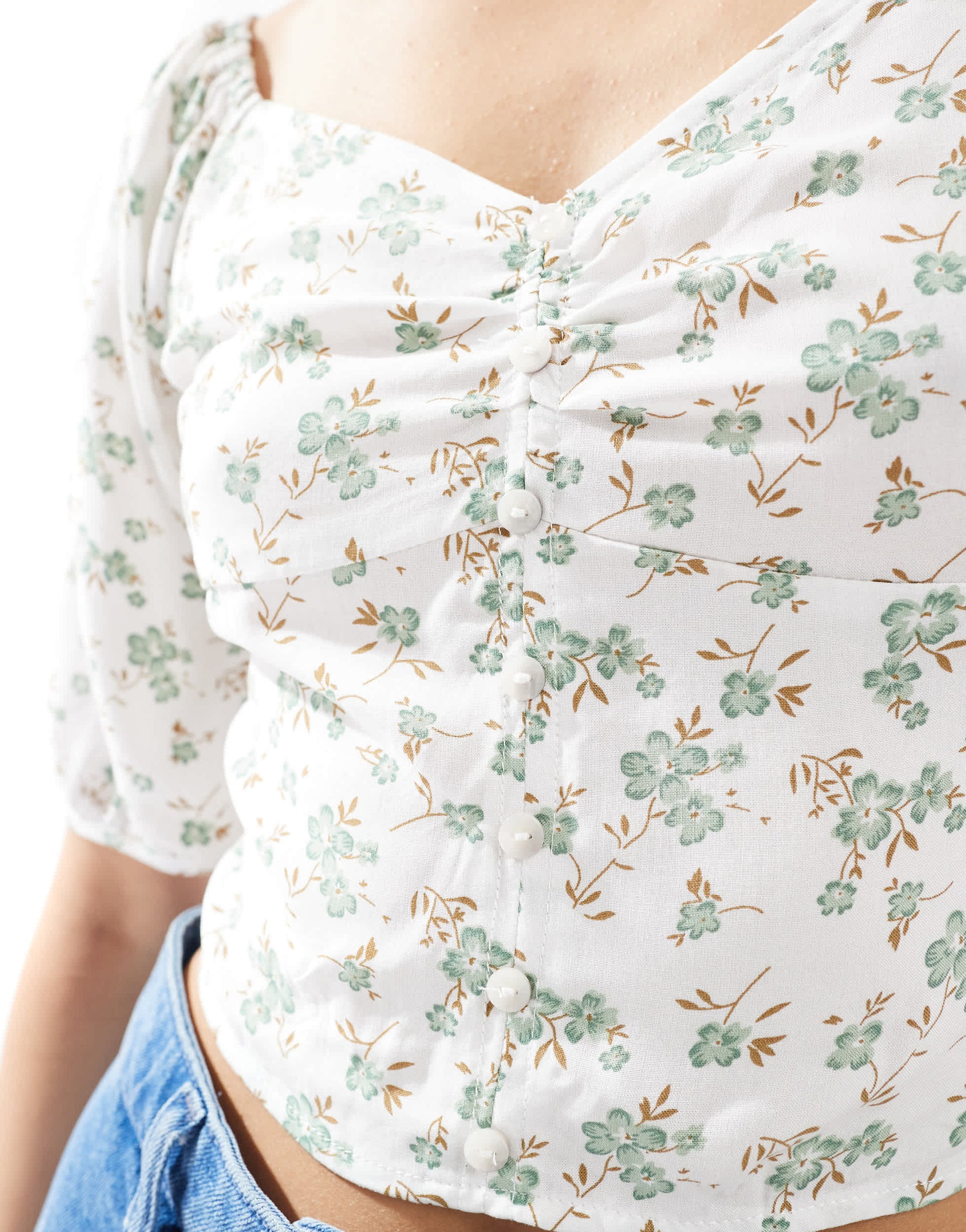 ONLY rushed crop top with floral print in off white