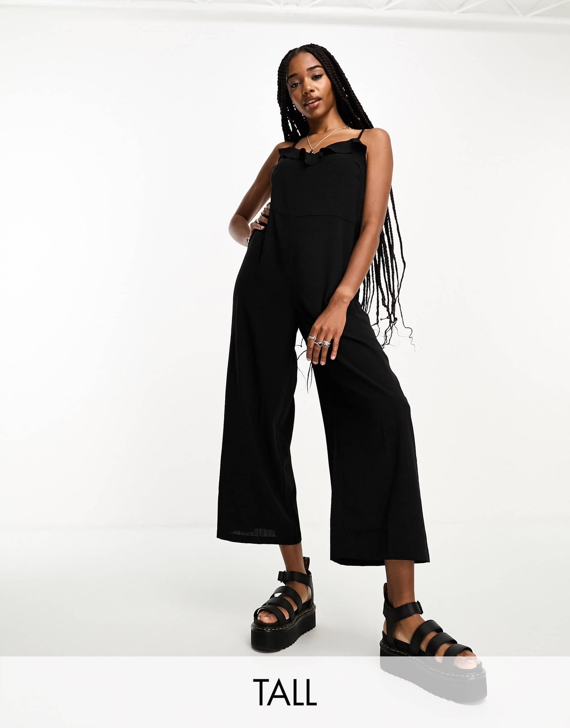 Only Tall frill detail belted jumpsuit in black