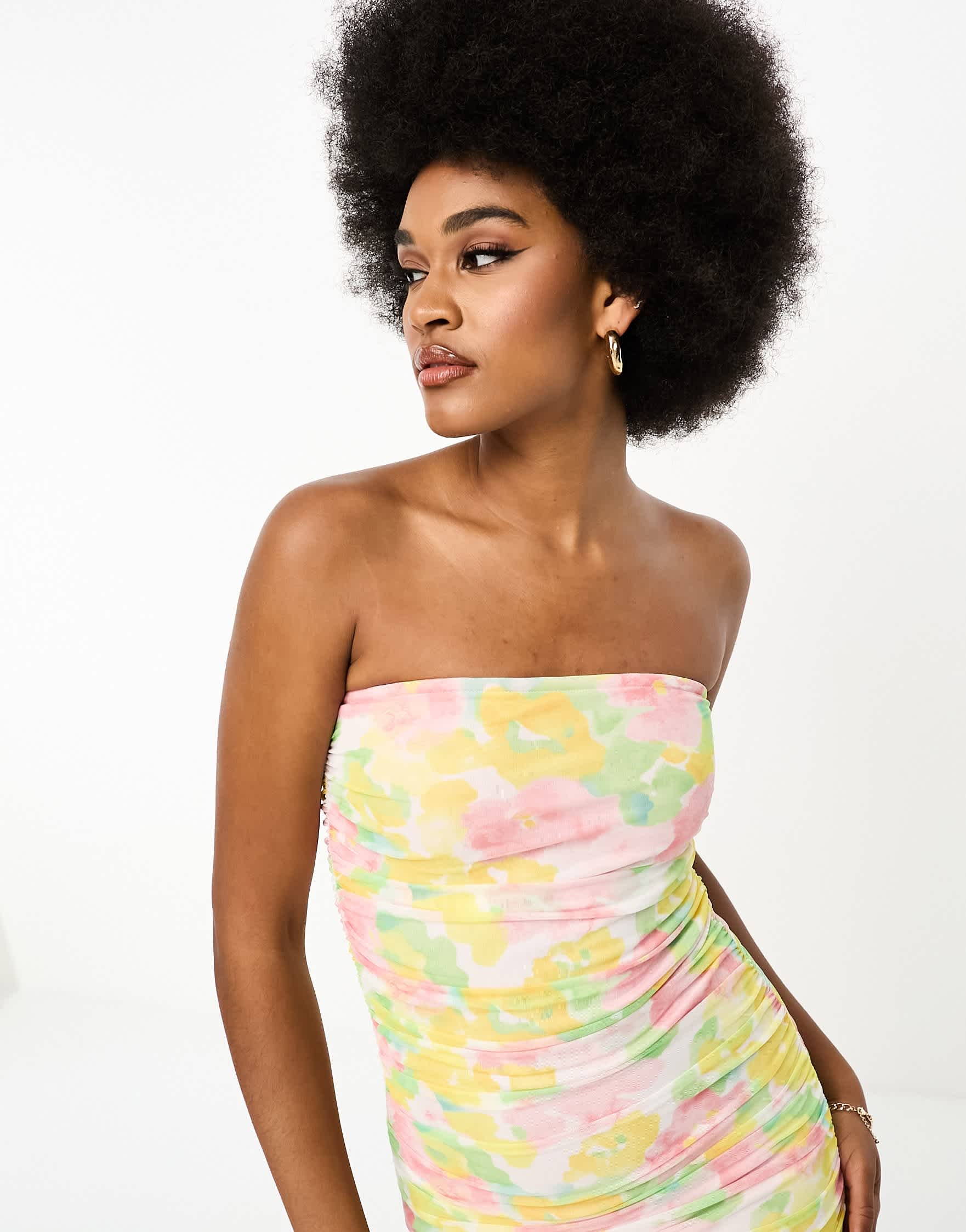Only Tall ruched detail strapless bodycon dress in multi floral