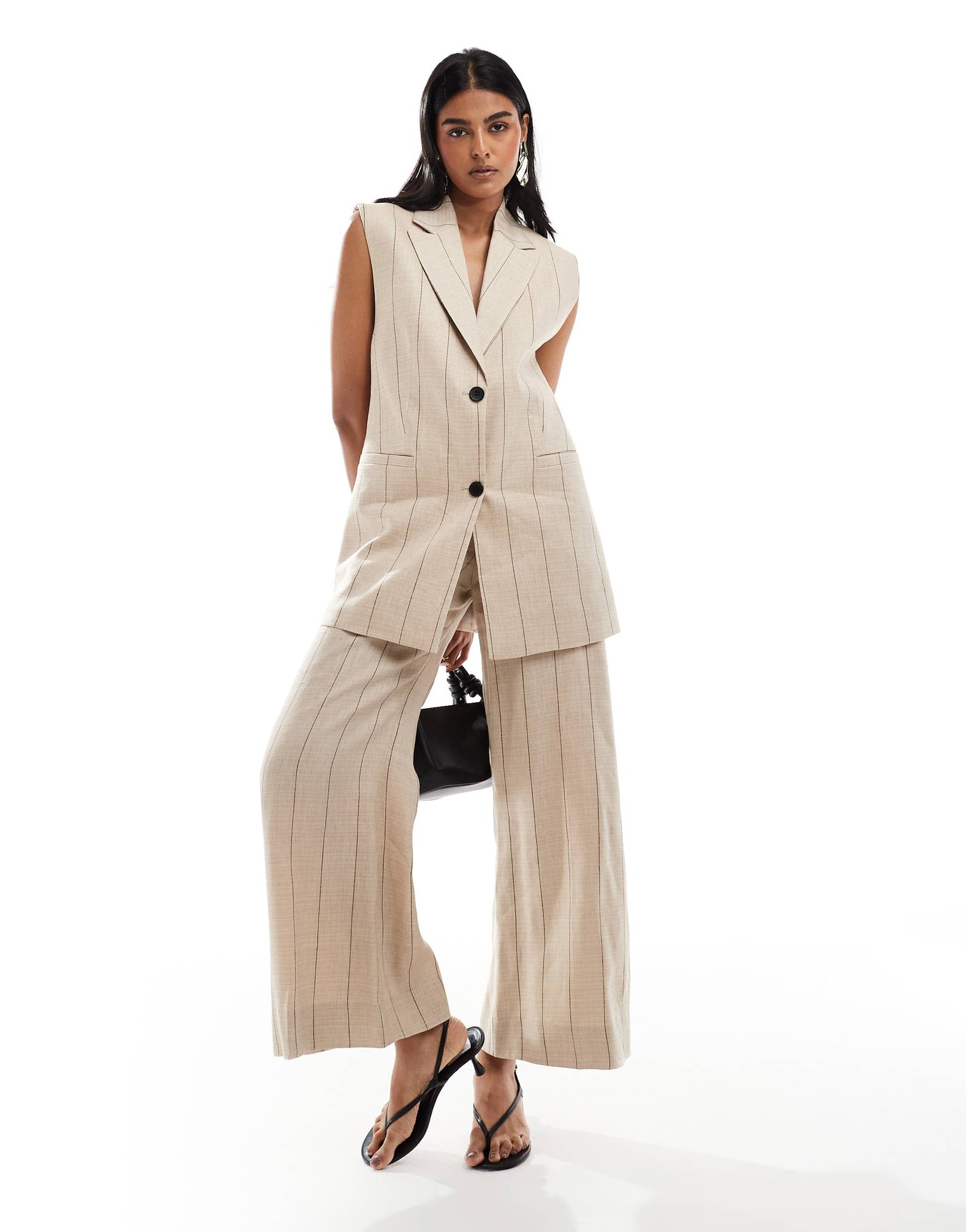 & Other Stories linen longline waistcoat in beige with black pinstripes