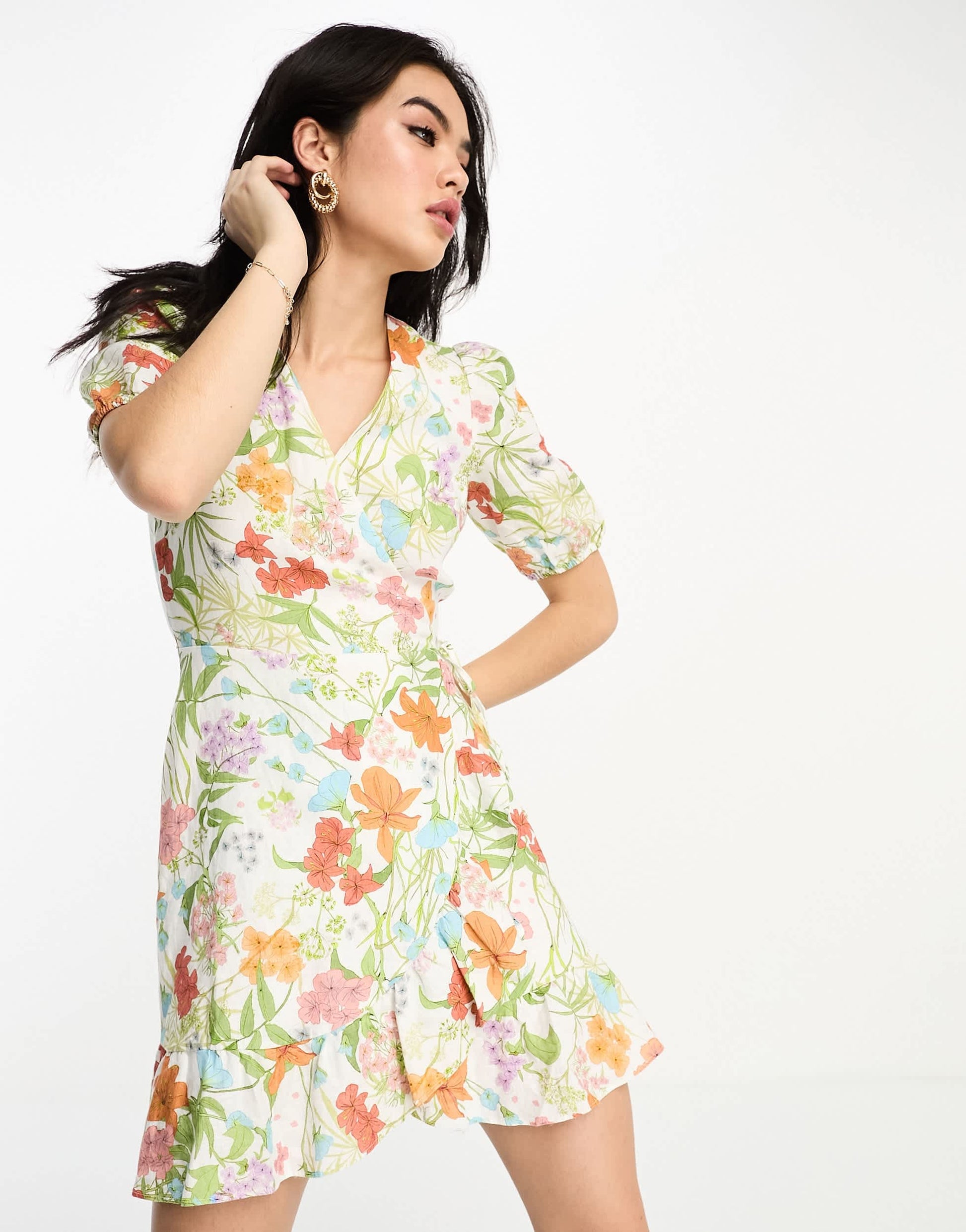 & Other Stories linen mini dress in multi floral