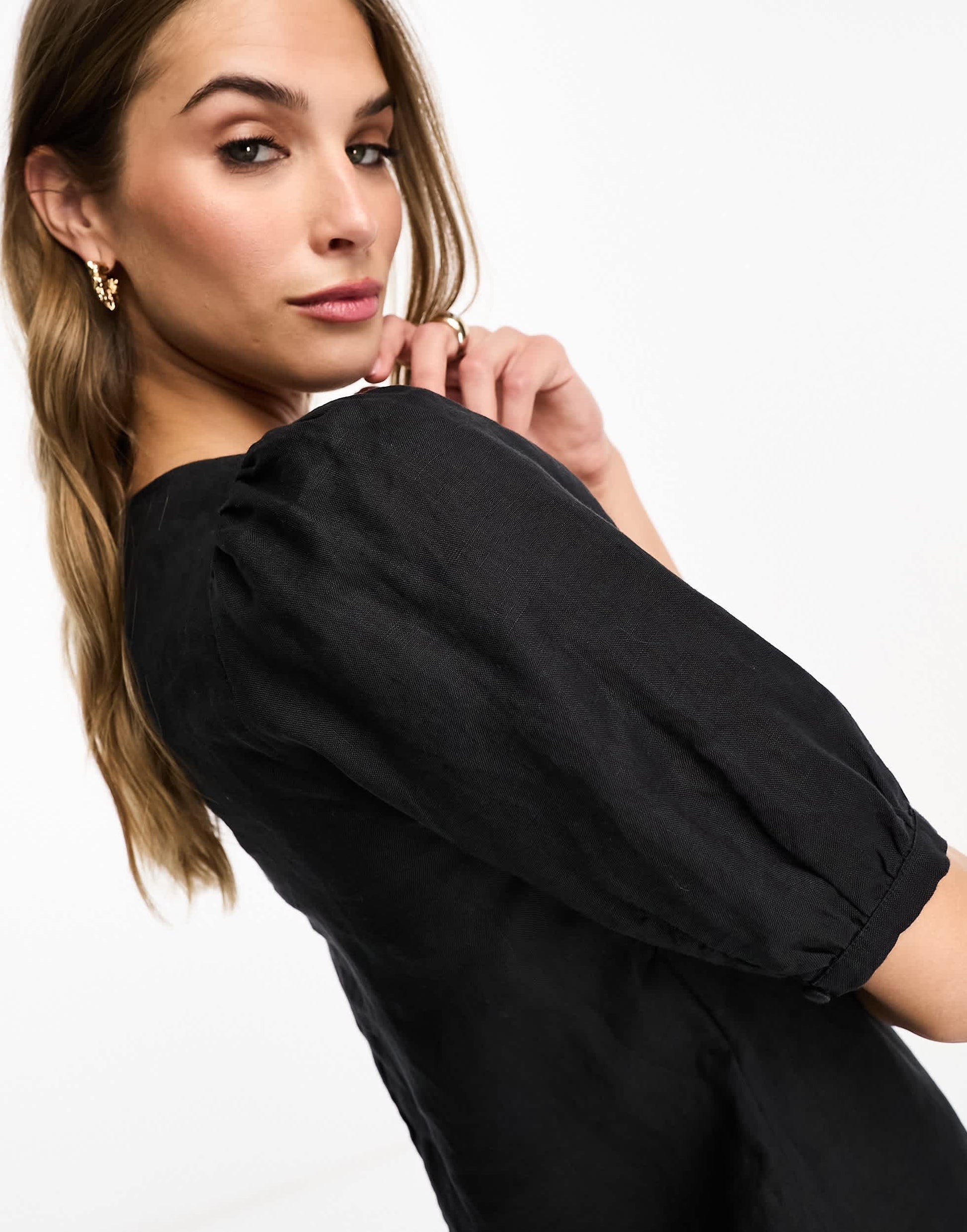 & Other Stories linen square neck mini dress in black
