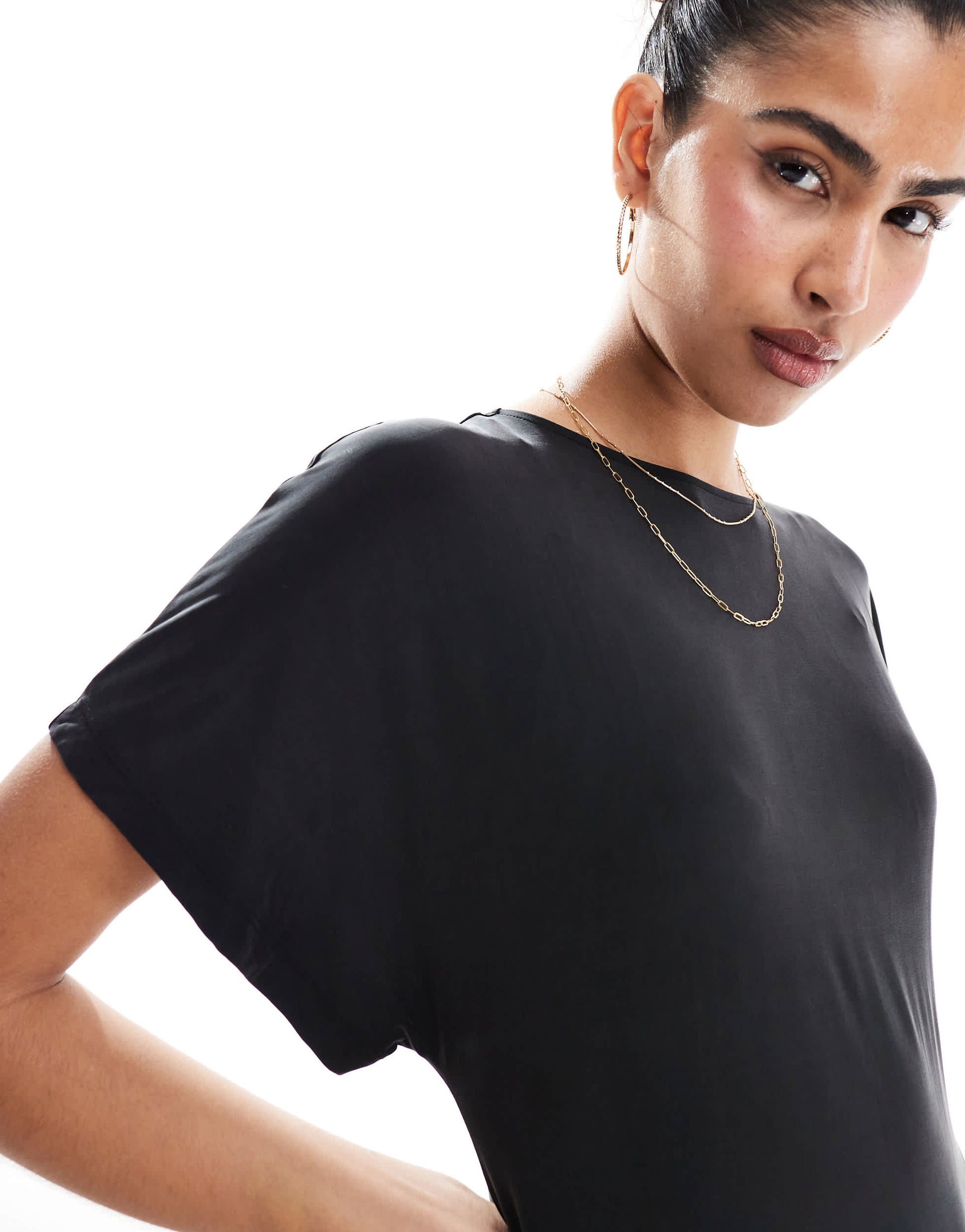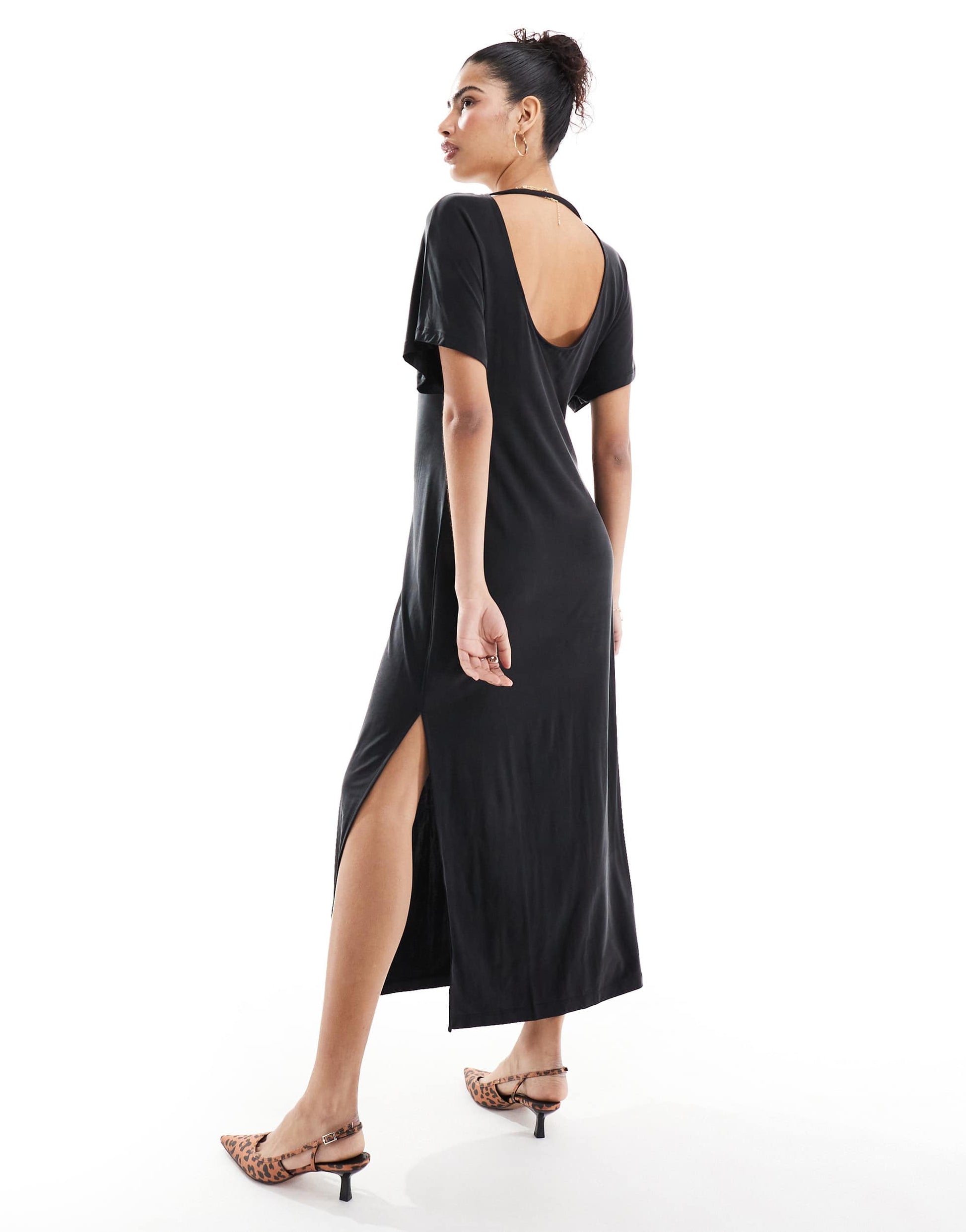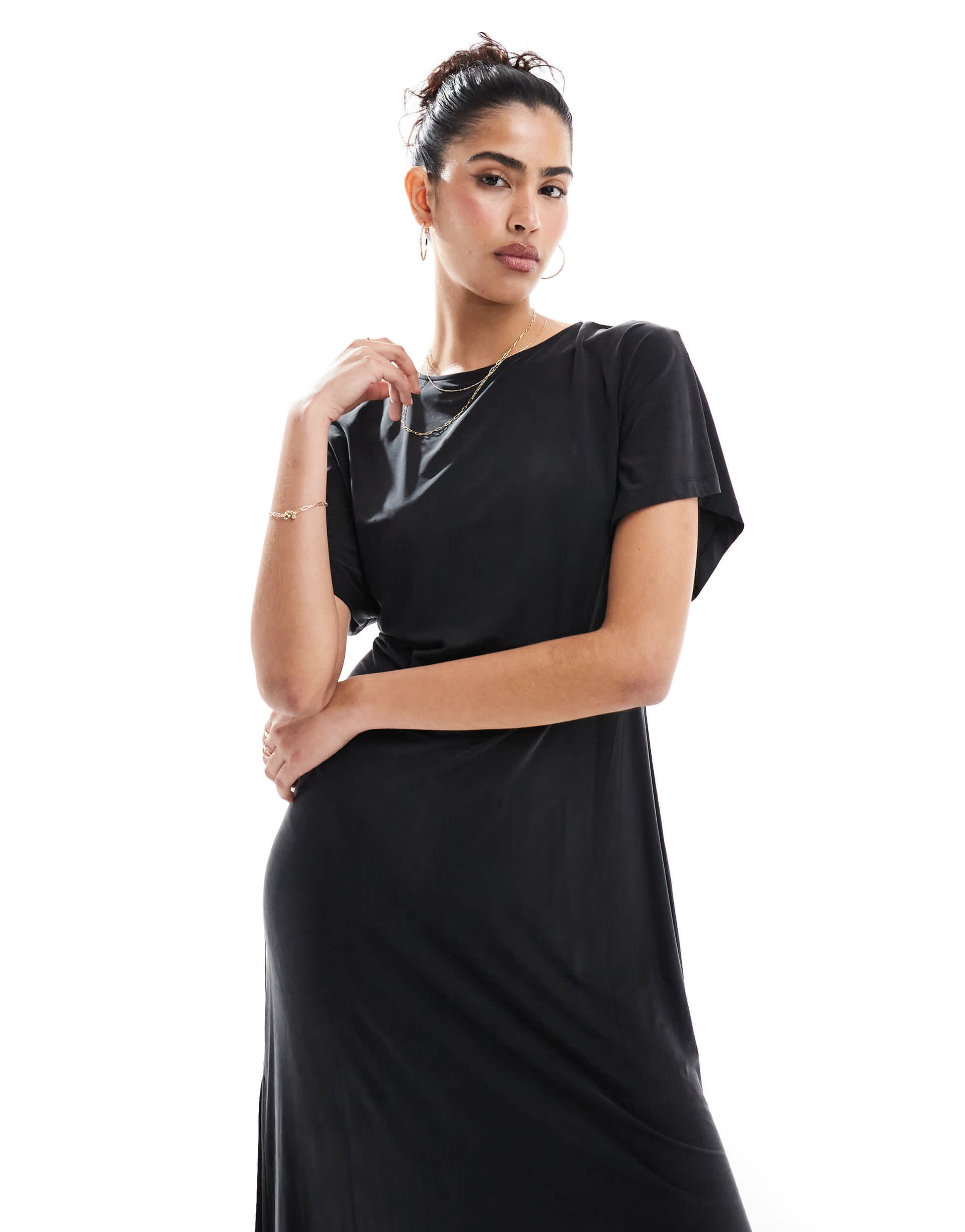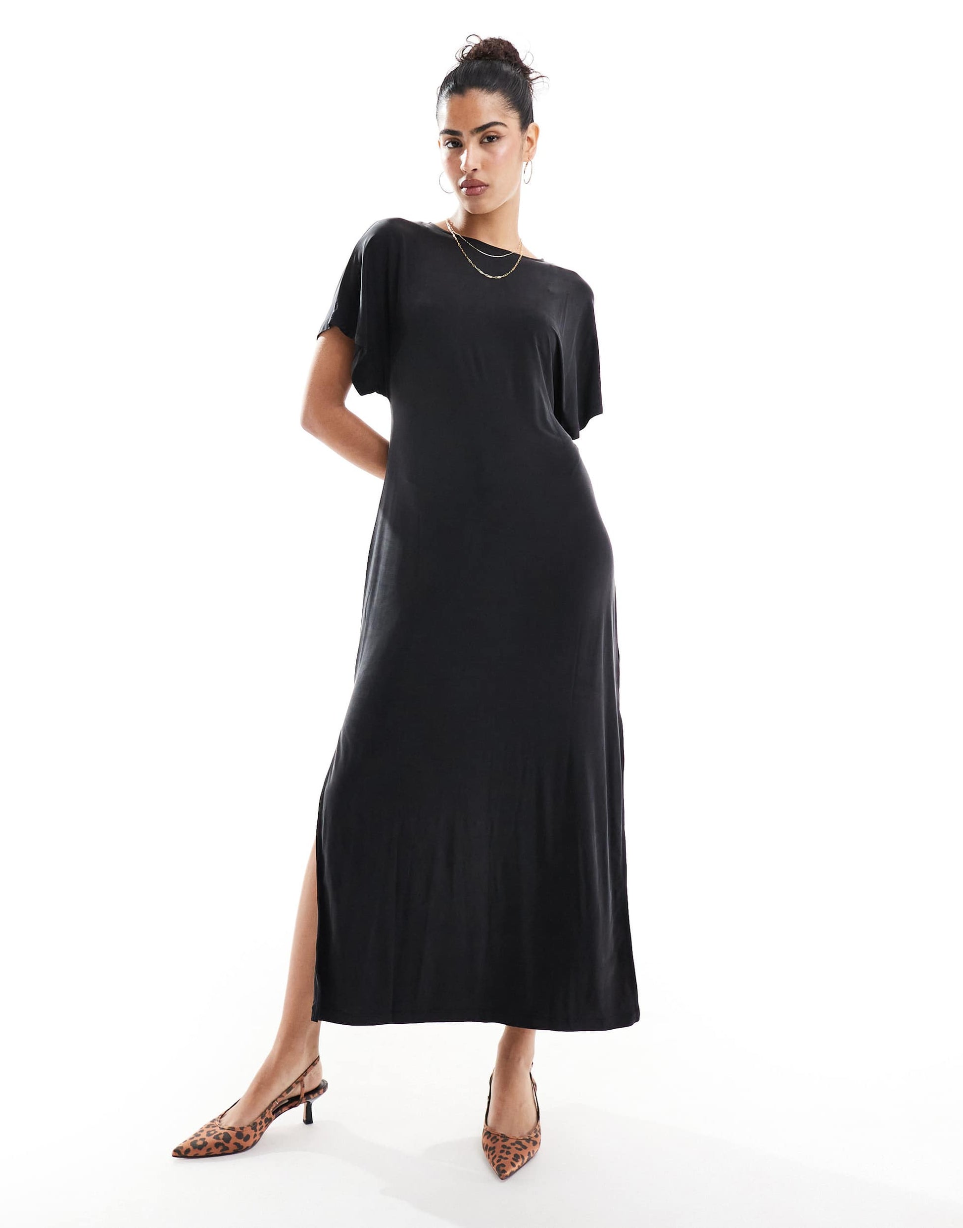 & Other Stories lux jersey midi dress with boat neck and thigh split in black