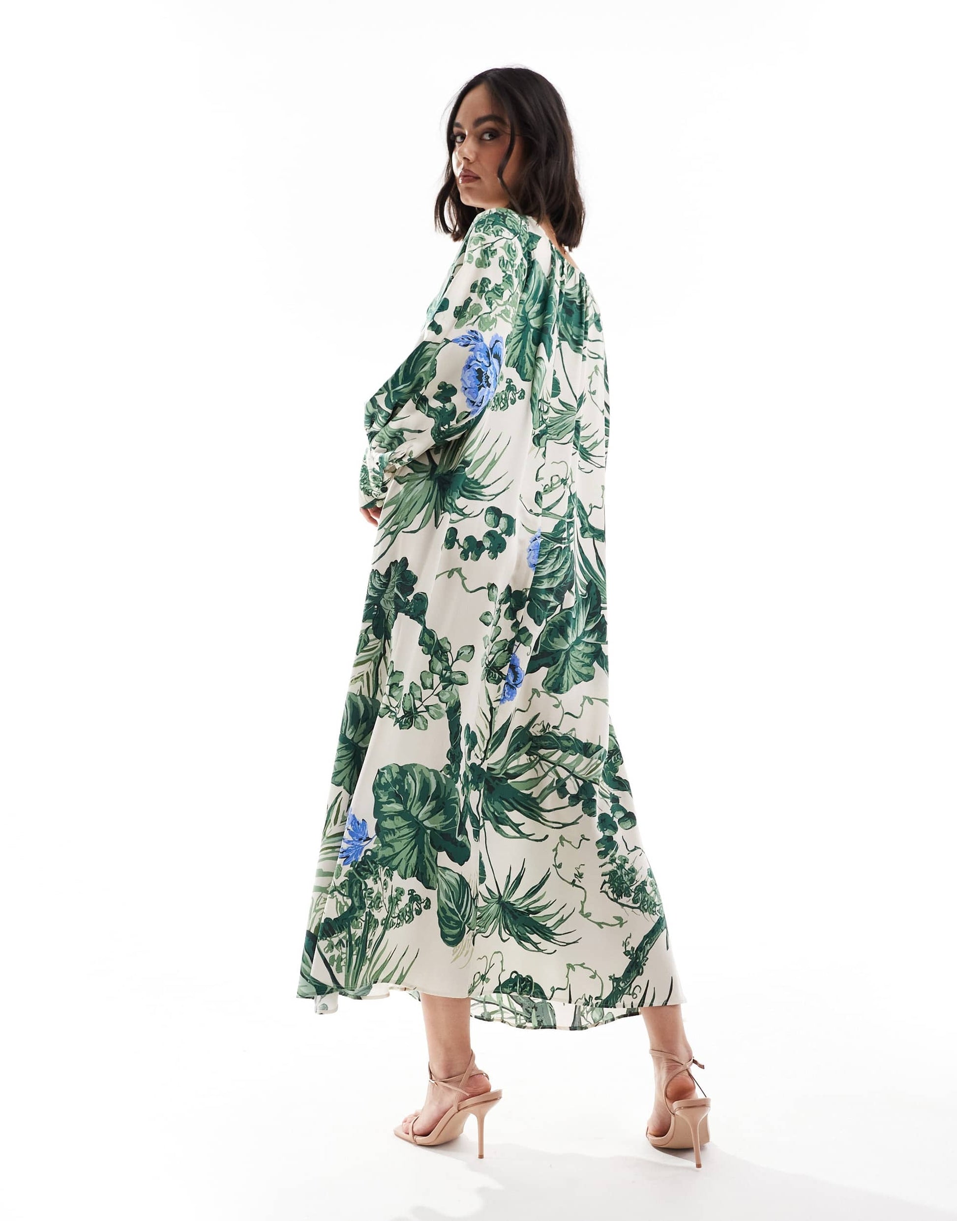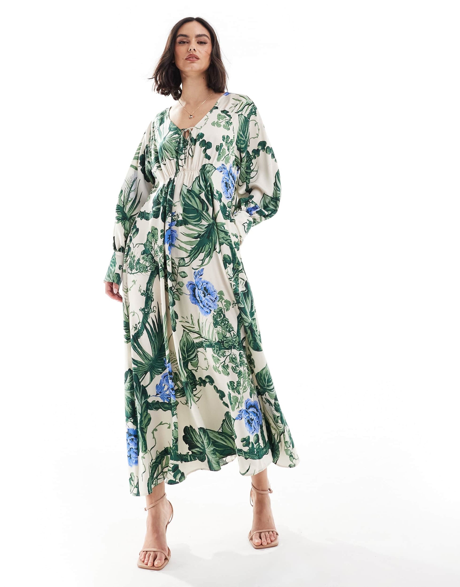& Other Stories maxi dress with tie front v-neckline and long sleeves in floral leaf print