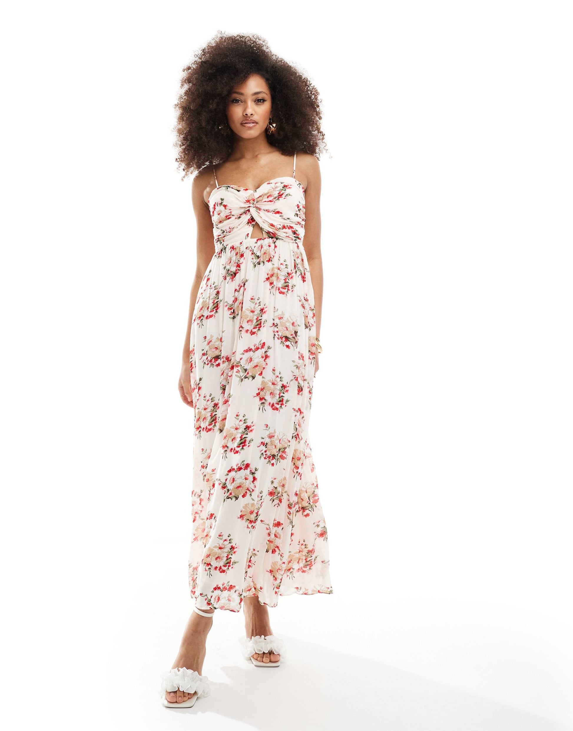 & Other Stories midaxi bustier dress with keyhole twist front detail in floral print