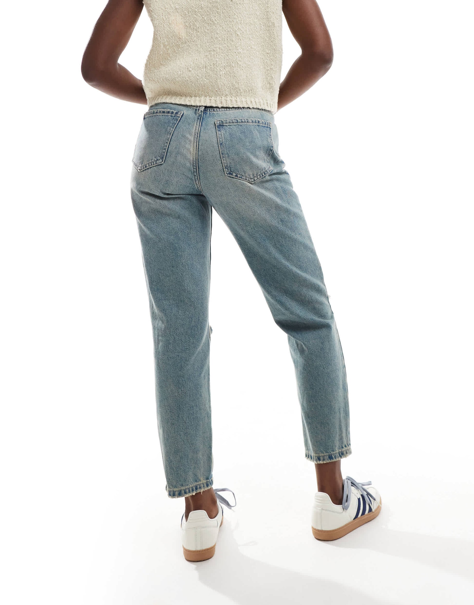 Pimkie high waisted knee rip distressed mom jeans in dirty blue wash