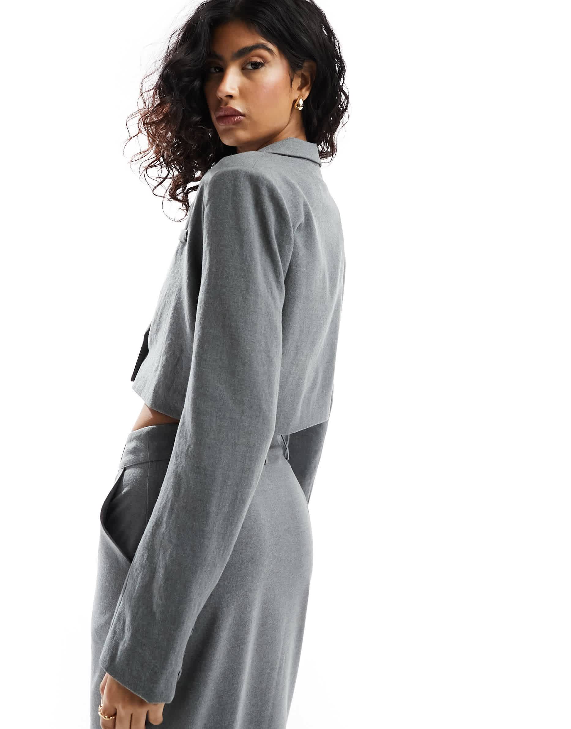Pretty Lavish cropped tailored blazer co-ord in grey melange
