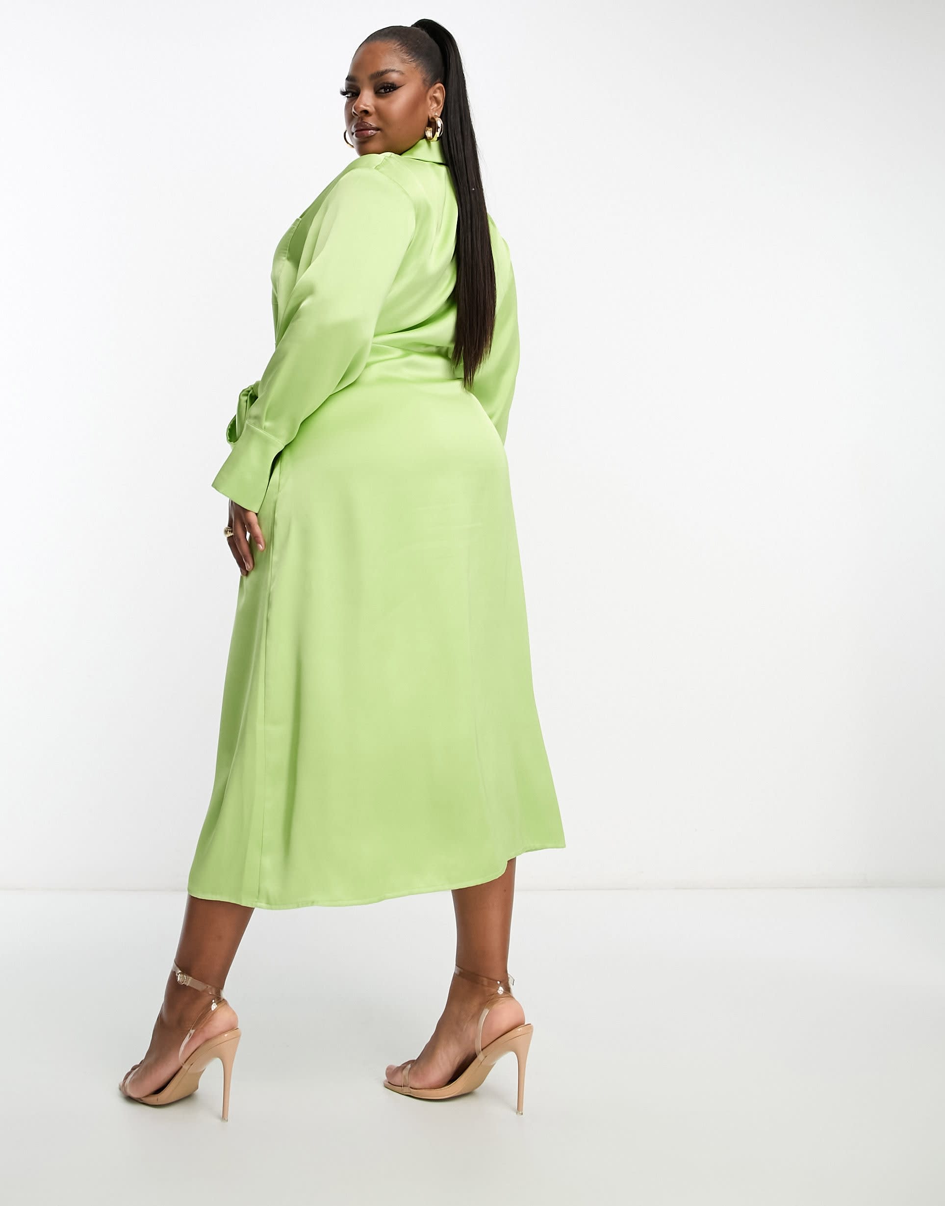 Pretty Lavish Curve wrap shirt midaxi dress in apple green
