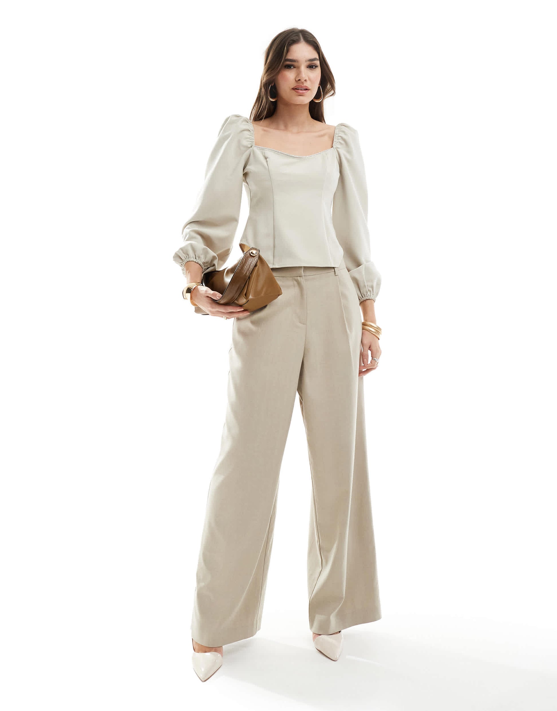 Pretty Lavish embellished corset top in stone