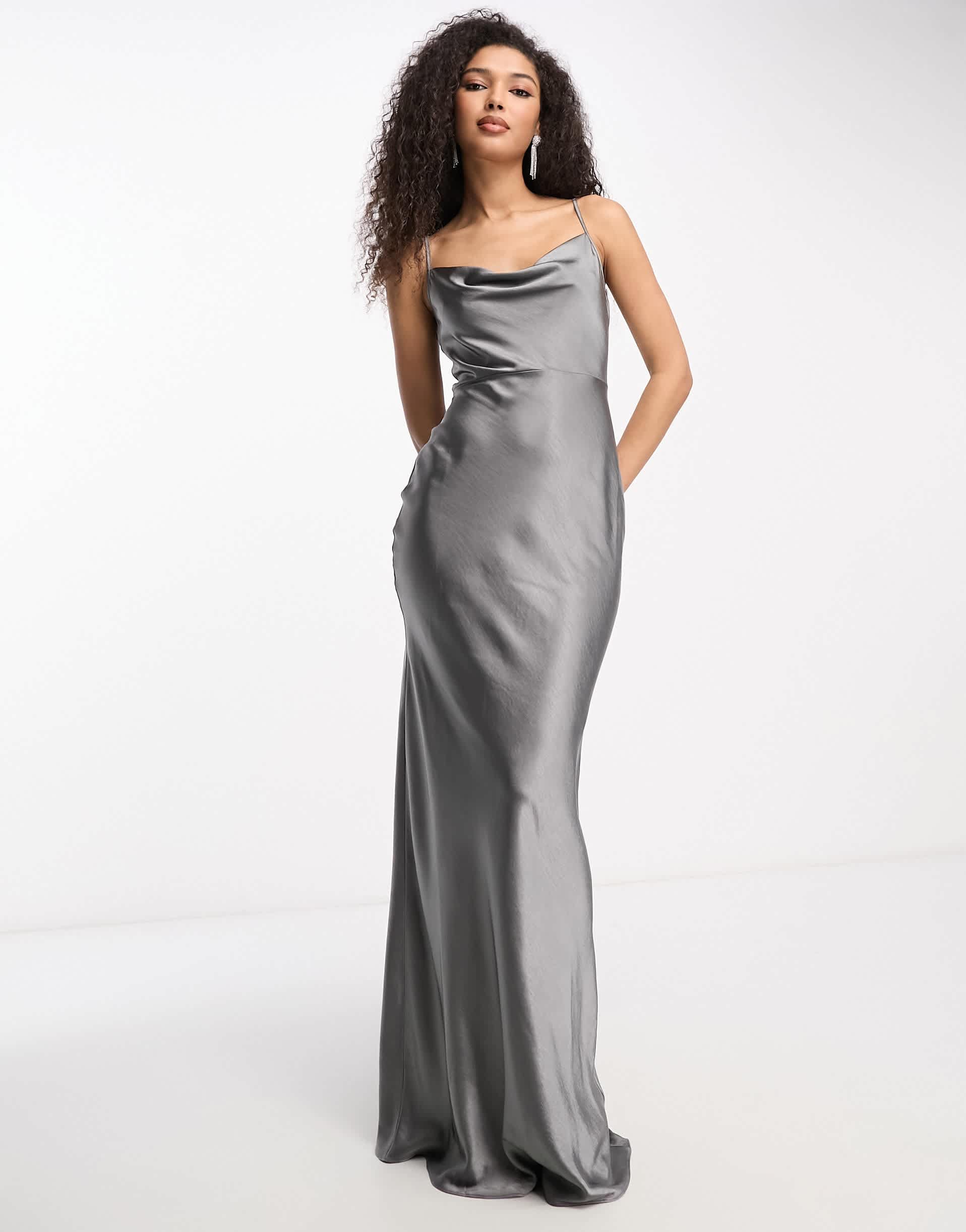 Pretty Lavish Keisha cowl neck satin maxi dress in slate grey