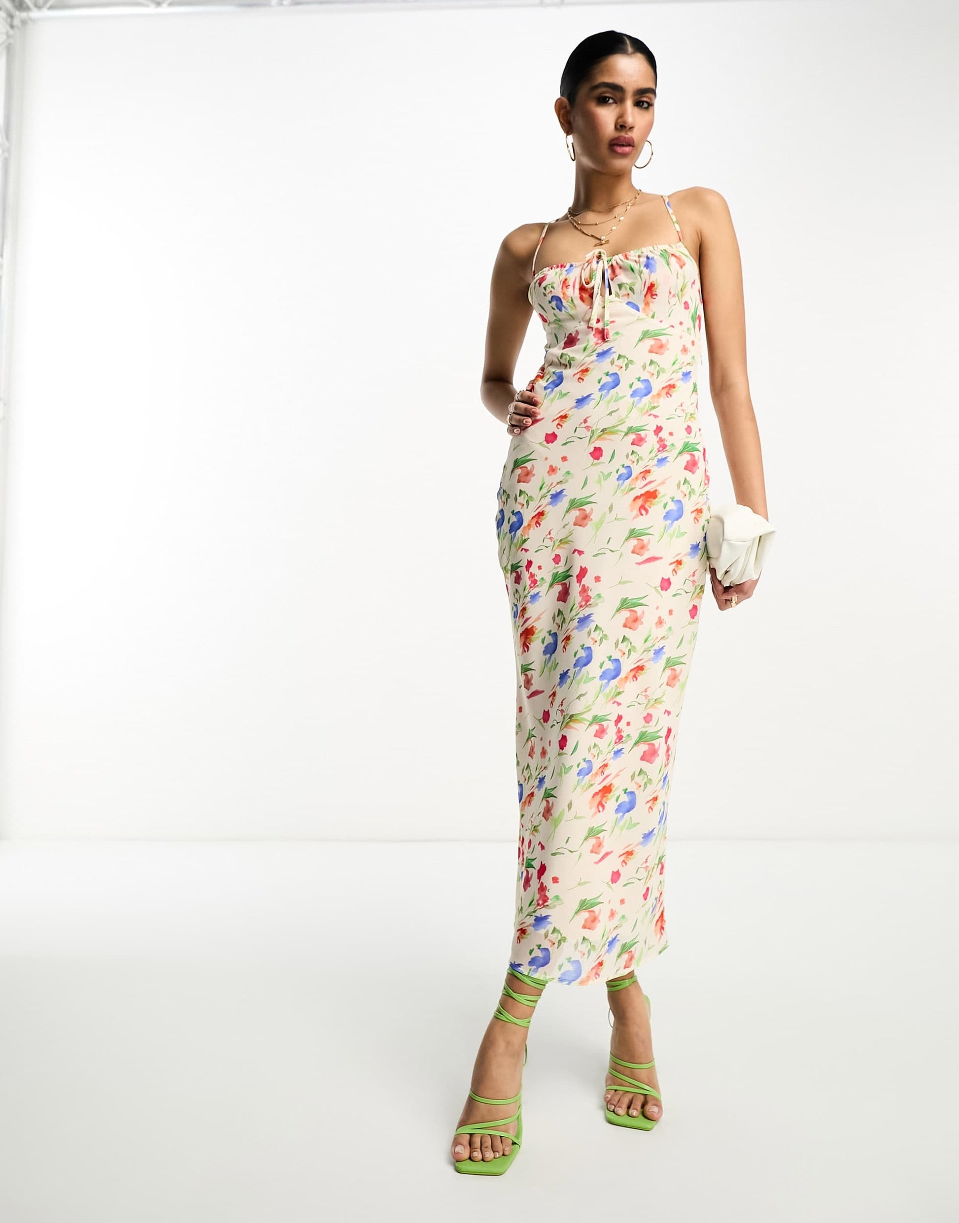 Pretty Lavish tie slip midaxi dress in ivory dainty floral