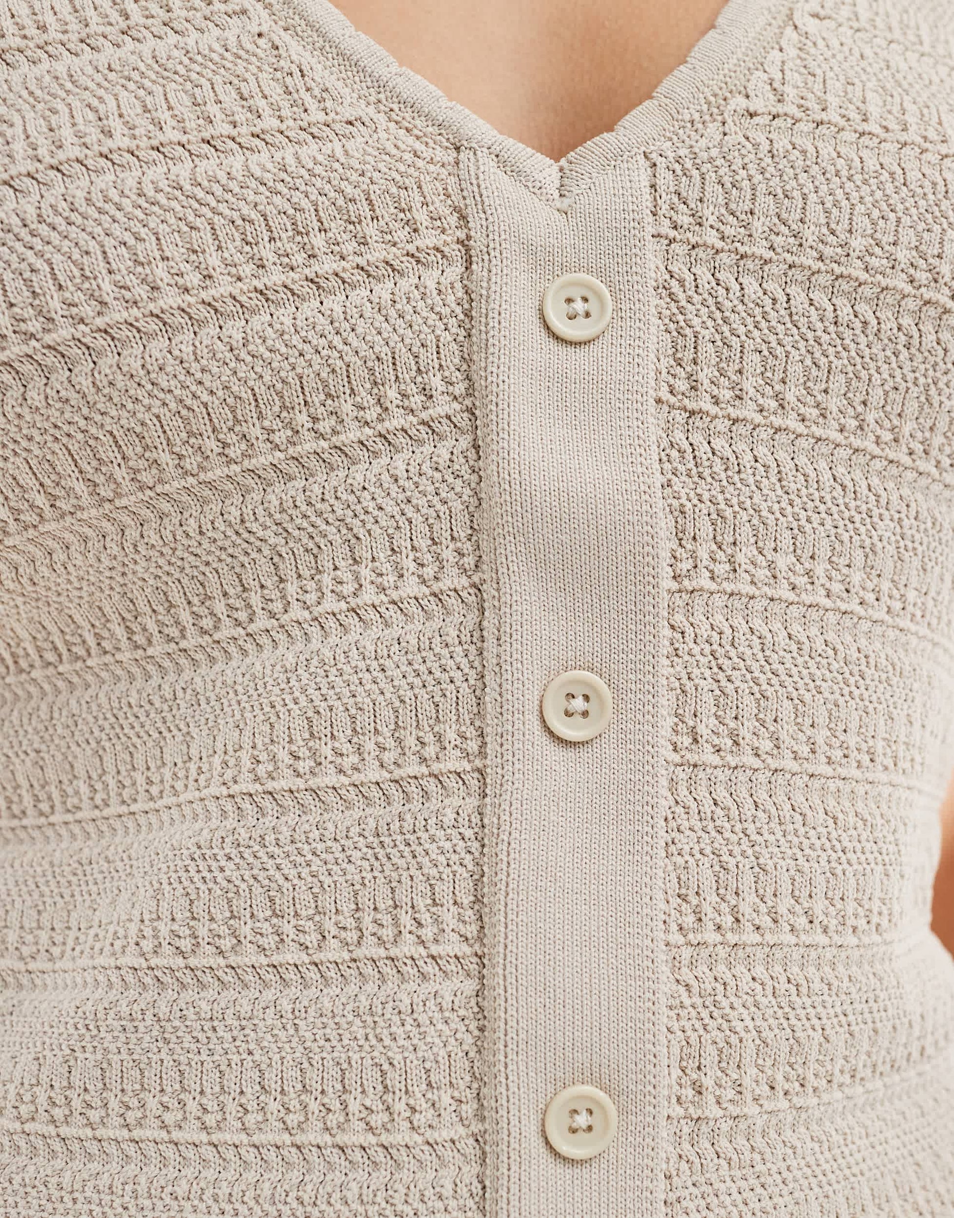 Crochet: patterned with a handmade look Main: 65% Viscose, 35% Nylon.
