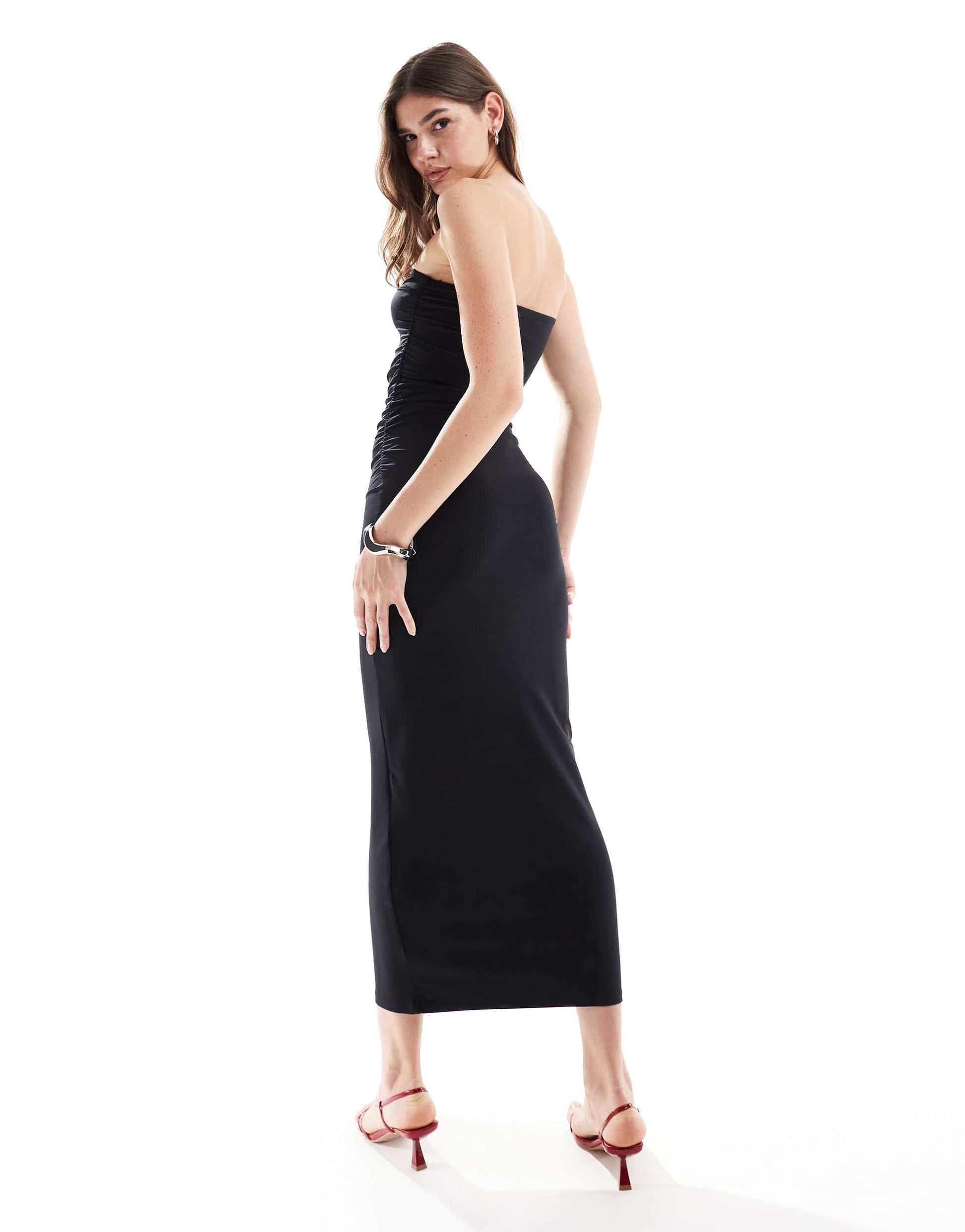 Pull&Bear polyamide sculpt bandeau midi dress in black