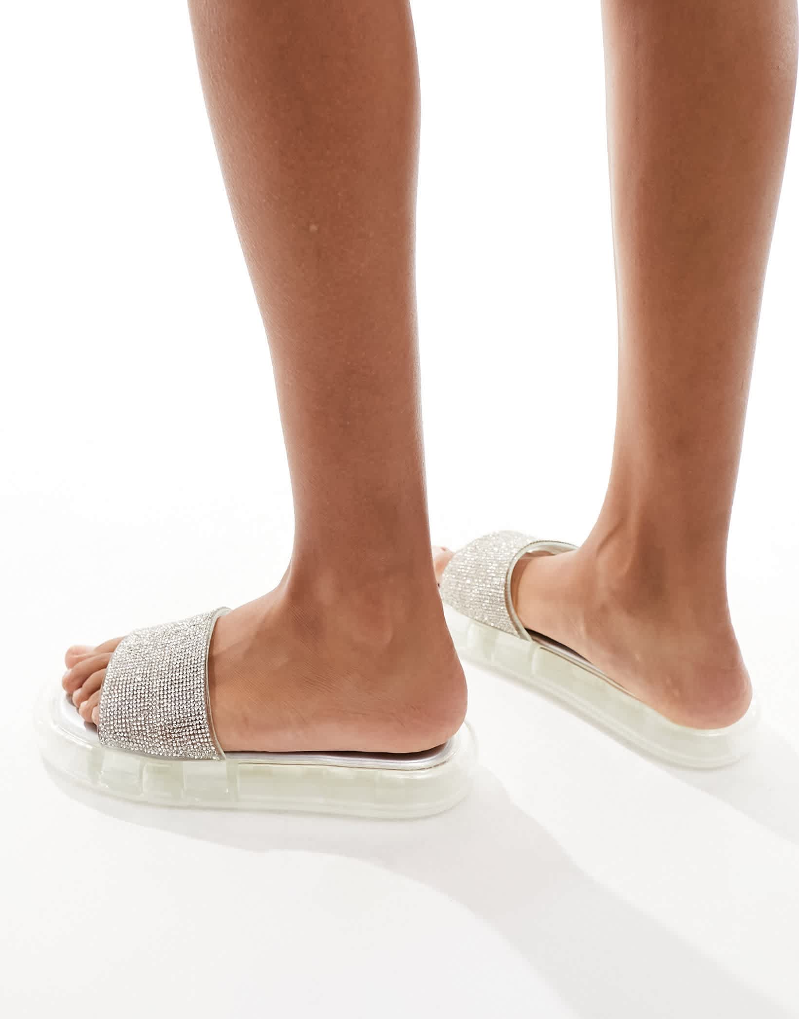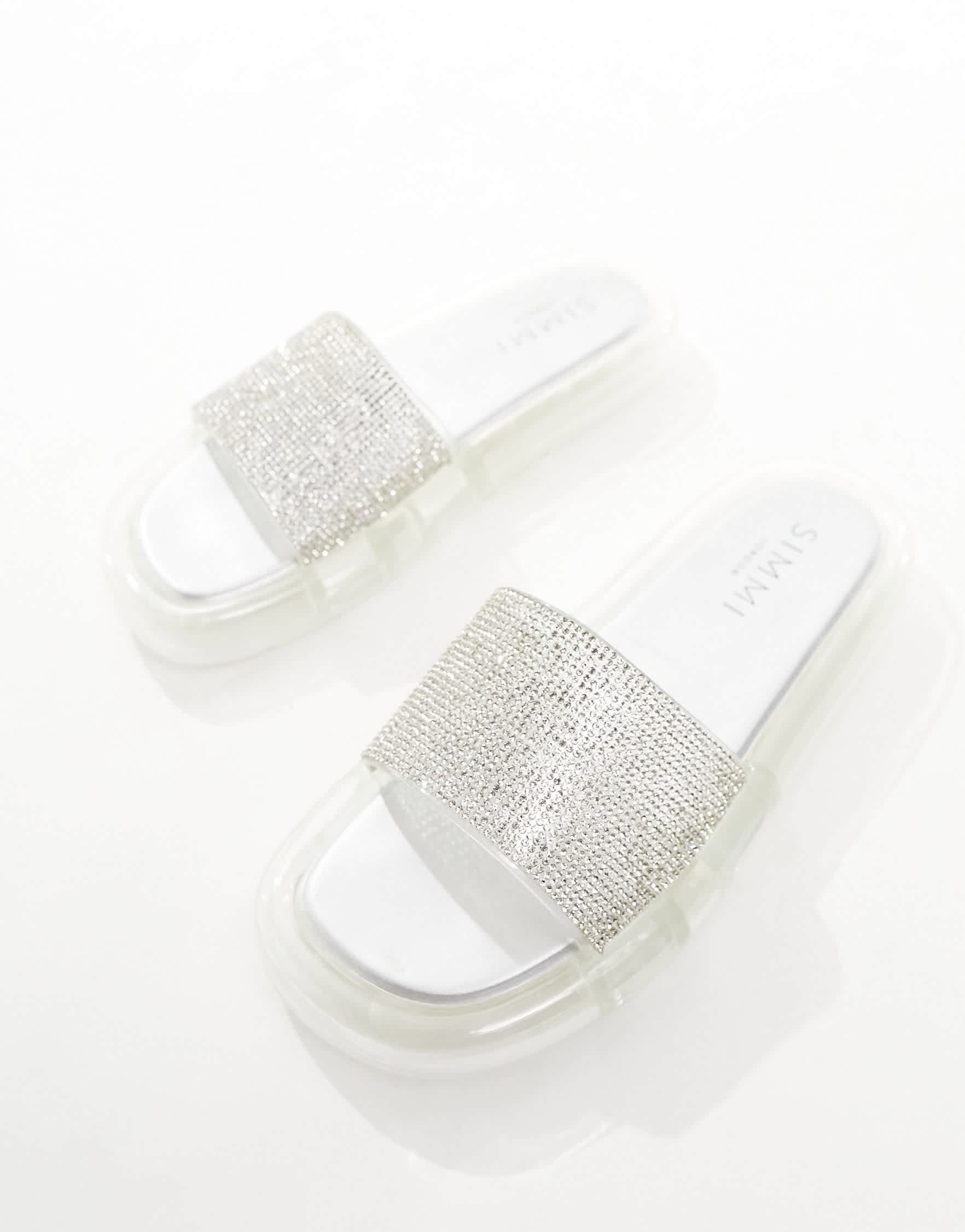 Simmi London Fan flat sandal with embellished upper in silver