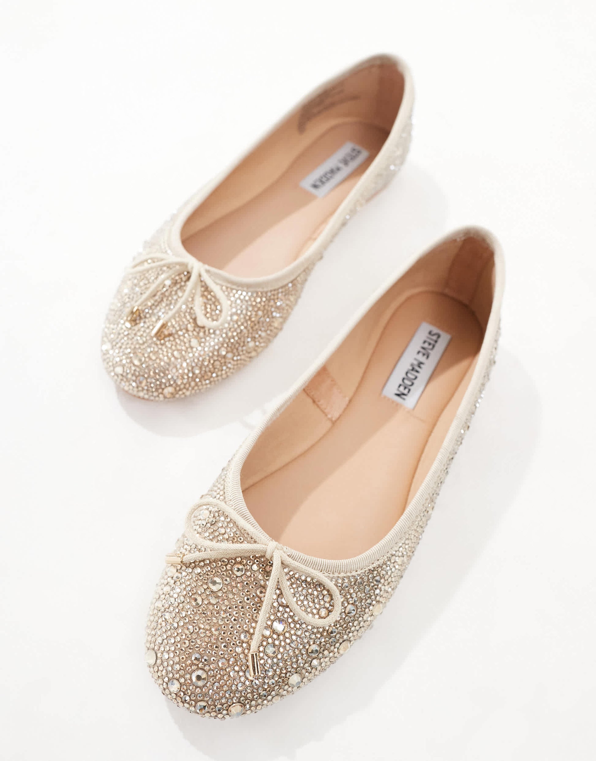 Steve Madden Blossom bridal embellished ballet flats with bow in champagne