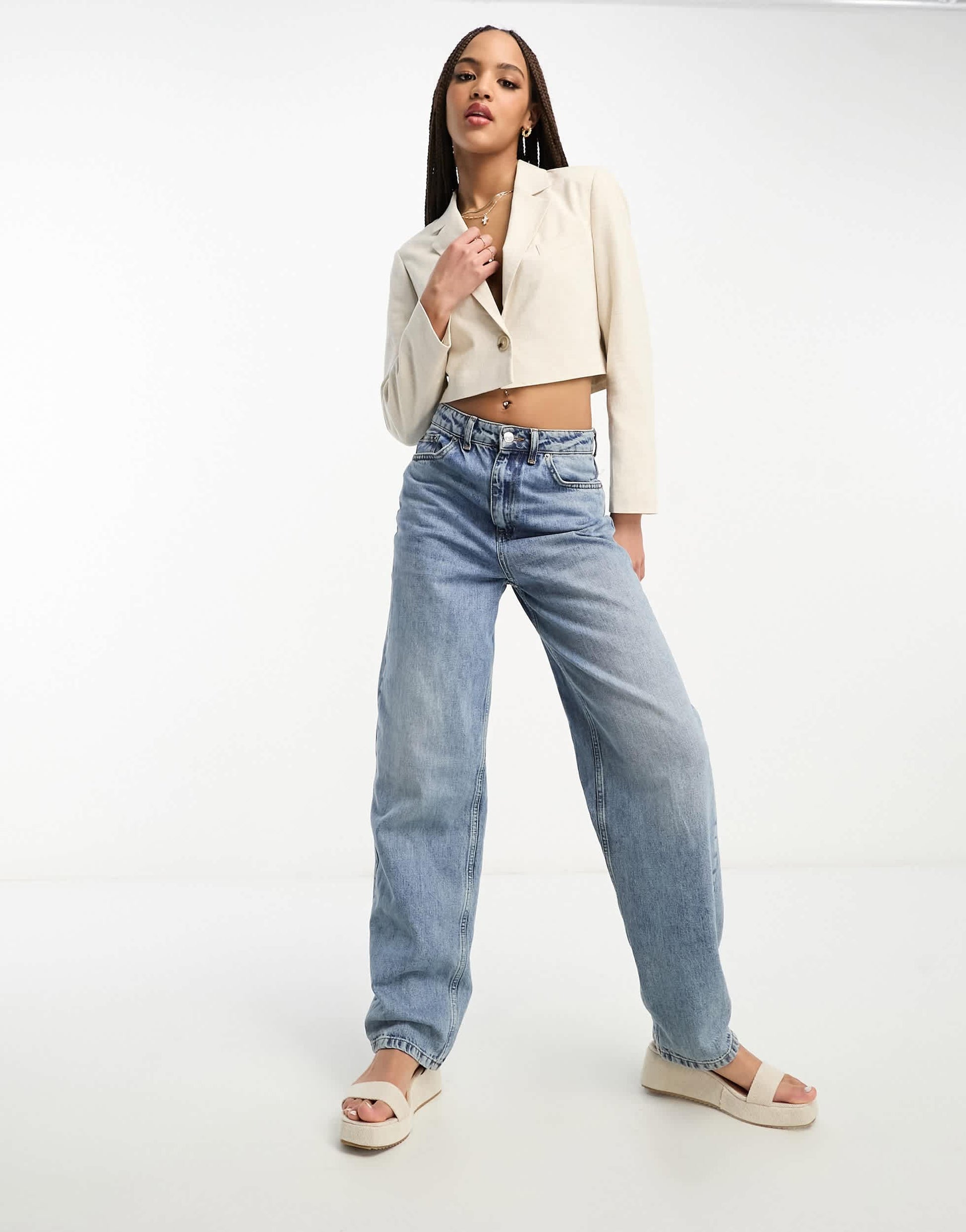 Stradivarius cropped linen blazer in natural