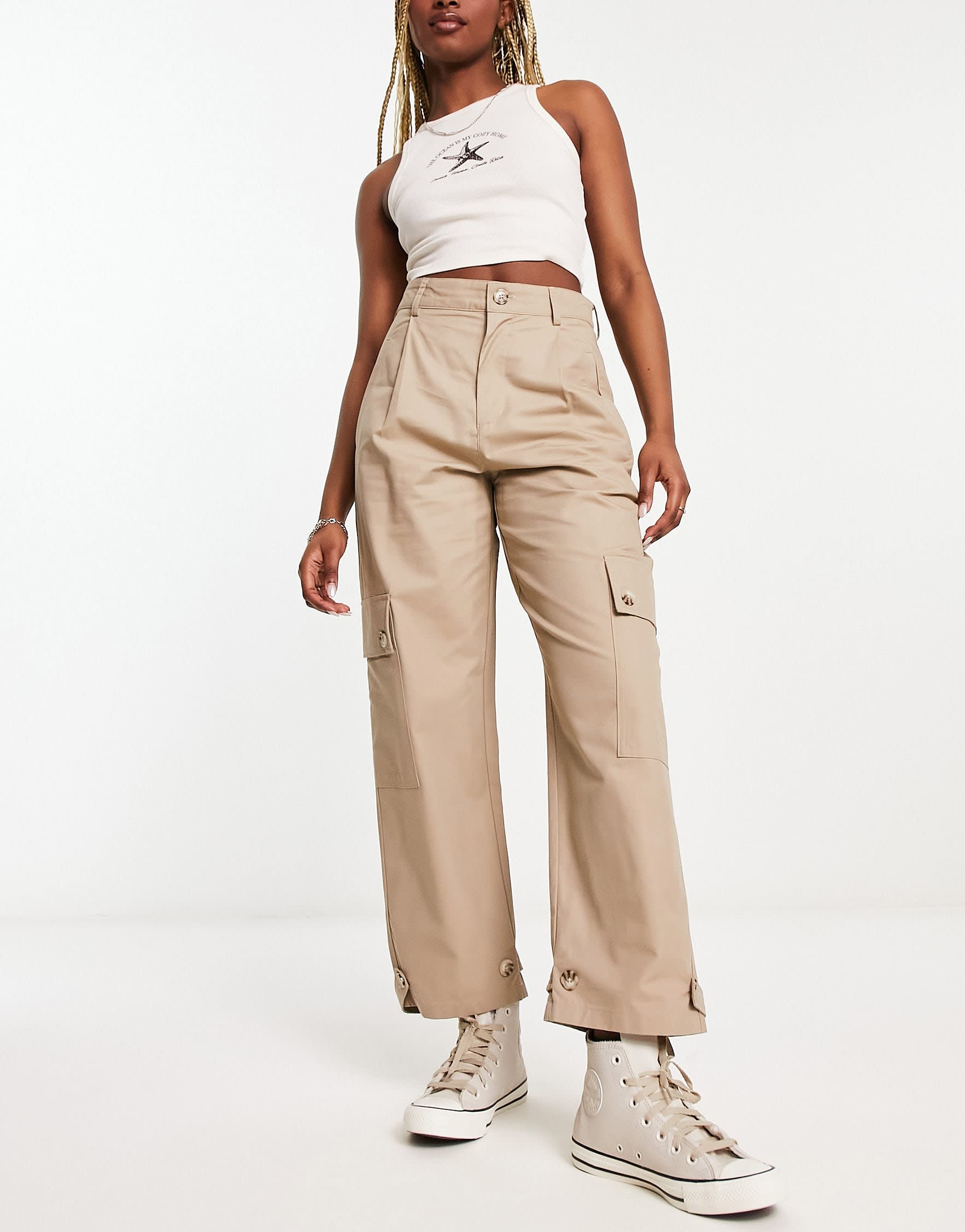 Stradivarius tailored utility cargo trouser in stone