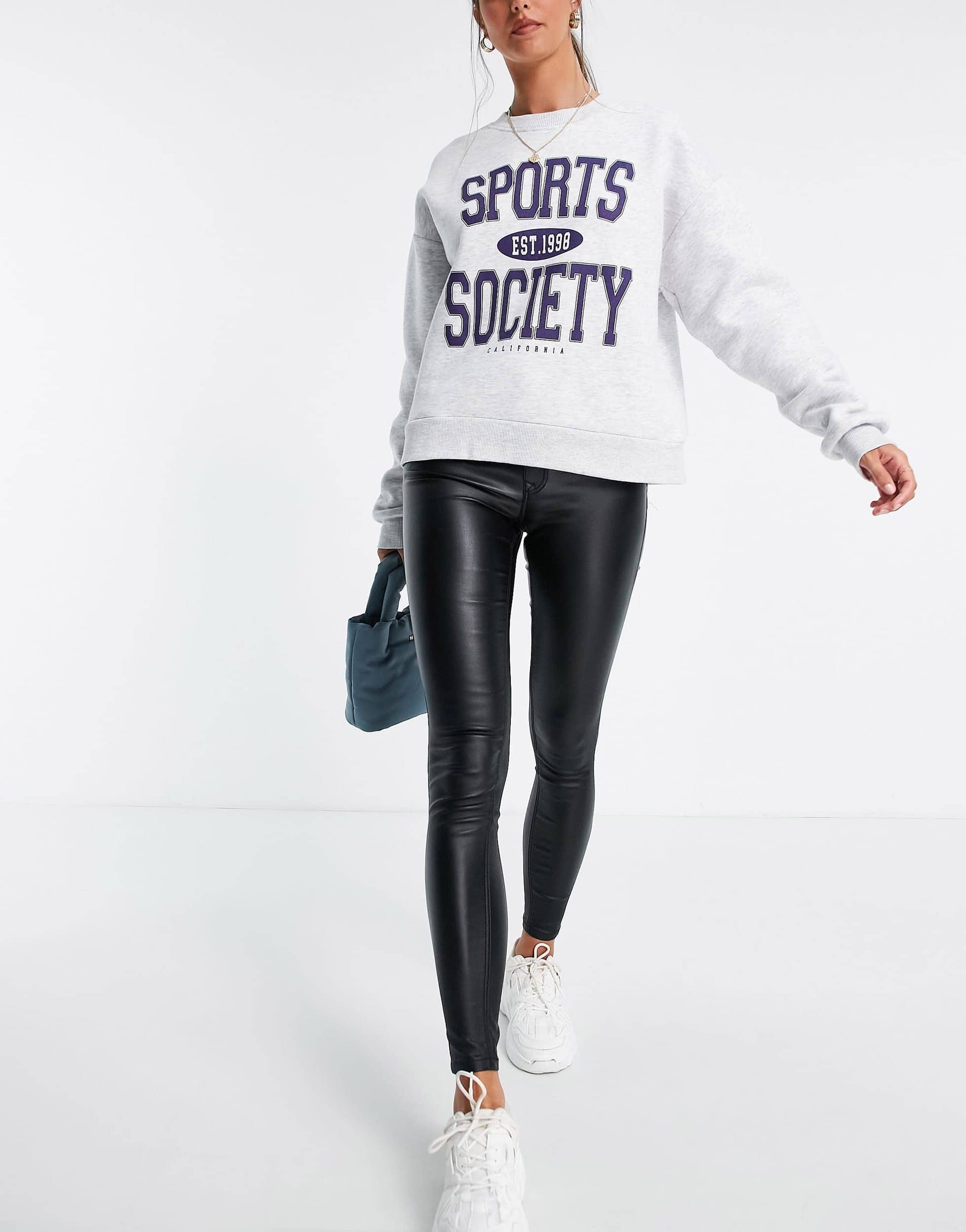 Stradivarius Tall coated push up jean in black